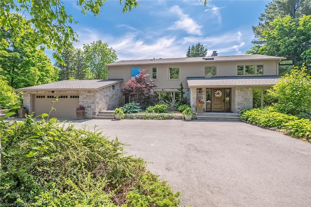 Nestled on a serene 5.65-acre property, this beautiful rural retreat offers a perfect blend of modern comfort and natural beauty. Winding trails meander through the lush forest, inviting you to explore your private paradise. The home boasts 4 spacious bedrooms, 2.5 luxurious baths, and over 4,000 square feet of elegant living space. Step into the stunning great room, where a wood-burning fireplace and a wall of windows frame breathtaking views of the surrounding majestic trees. The eat-in kitchen features quartzite countertops, stainless steel appliances, a bar area, and a large island. The cozy sunroom with a gas stove is ideal for savoring your morning coffee. The family room, warmed by a gas fireplace, is perfect for family gatherings. Gorgeous hardwood floors flow throughout the home, complementing the updated bathrooms and functional mudroom. The primary suite is a true sanctuary, with private patio access, a 6-piece ensuite bath featuring heated marble floors, a free-standing soaker tub, double vanity, glass shower, and a spacious walk-in closet with heated floors for added luxury. Outside, the property offers endless possibilities with a workshop, a chicken coop, a vegetable garden, and an orchard with fruit trees. This property provides the perfect balance of tranquility, comfort, and modern amenities, making it an idyllic countryside escape.