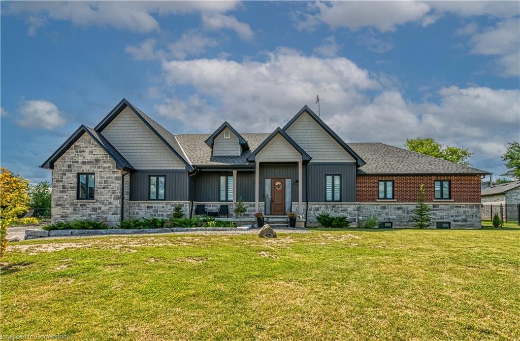 Beautifully presented, Custom Built 5 bedroom, 3 bathroom Home located on sought after1.08 acre lot in the desired location of Empire Estates with meticulous attention to detail throughout. Incredible curb appeal with brick & stone exterior, triple car garage, backyard oasis complete with extensive exposed aggregate concrete surrounding luxurious ingroundpool & oversized covered porch. The exquisitely finished, open concept interior offers approx. 3140sq ft of distinguished M/F living space highlighted by 9' ceilings throughout, custom kitchen w/oversized island, w/i pantry, quartz counters & S/S appliances, bright living room w/fireplace, b/i shelving & cathedral ceiling, formal dining area, welcoming foyer,5 spacious MF bedrooms (5th bed currently being used as a office), featuring luxurious primary suite with WI closet & stunning 5pc ensuite, oversized MF laundry with custom cabinetry. The lower level is awaiting your personal finishing touches and includes ample storage & direct access to garage. Situated perfectly on the lot to include potential detached out building/shop. Conveniently located 15 min. south of Hamilton - central to Binbrook, Caledonia & York. Rarely do custom homes such as this come available!