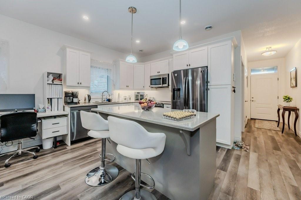 Lovely life lease bungalow in Listowel, perfect for your retirement! With 1,333 sq ft of living space, this home has 2 bedrooms, 2 bathrooms and is move-in ready. Walk through the front foyer, past the 2 piece powder room into the open concept space. The white kitchen has ample counter space and large island, a great spot for your morning cup of coffee! The living room leads into an additional room, perfect for a home office or craft room. There are 2 bedrooms including a primary bedroom with 3 piece ensuite with a walk-in shower. The in-floor heating throughout the house is an added perk, no more cold toes! The backyard has a private patio with a gas BBQ. This home has a great location with easy access to downtown, Steve Kerr Memorial Recreation Complex and much more!