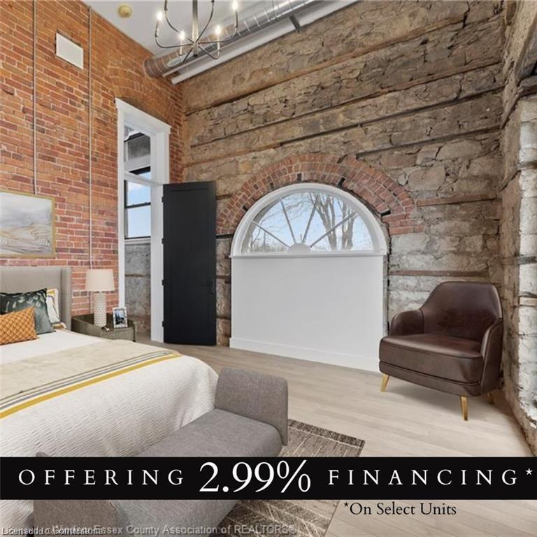 FREE CAR! FOR A LIMITED TIME, EACH NEW PURCHASE INCLUDES A FREE CAR! ALSO TAKE ADVANTAGE OF THE 2.99% BUILDER FINANCING. CONDITIONS APPLY. WELCOME TO THE 1742 SQ FT BLUEBIRD MODEL AT THE HIGHLY ANTICIPATED LOFTS AT ST. ANTHONY. ENJOY THE PERFECT BLEND OF OLD WORLD CHARM & MODERN LUXURY WITH THIS UNIQUE LOFT STYLE CONDO, FEATURING GLEAMING ENGINEERED HARDWOOD FLOORS, QUARTZ COUNTER TOPS IN THE SPACIOUS MODERN KITCHEN FEATURING LARGE CENTRE ISLAND AND FULL APPLIANCE PACKAGE. 2 SPACIOUS BEDROOMS INCLUDING PRIMARY SUITE WITH WALK IN CLOSET AND BEAUTIFUL 4 PC BATHROOM. ADDITIONAL DEN PERFECT FOR OFFICE SPACE OR ADDITIONAL STORAGE. IN SUITE LAUNDRY , BRIGHT AIRY LIVING ROOM WITH PLENTY OF WINDOWS. PRIVATE 212 SQ FT BALCONY WITH BBQ HOOK UP. THIS ONE OF A KIND UNIT FEATURES PLENTY OF ORIGINAL EXPOSED BRICK AND STONE. SITUATED IN A PRIME AMHERSTBURG LOCATION WALKING DISTANCE TO ALL AMENITIES INCLUDING AMHERSTBURG'S DESIRABLE DOWNTOWN CORE. DON'T MISS YOUR CHANCE TO BE PART OF THIS STUNNING DEVELOPMENT.