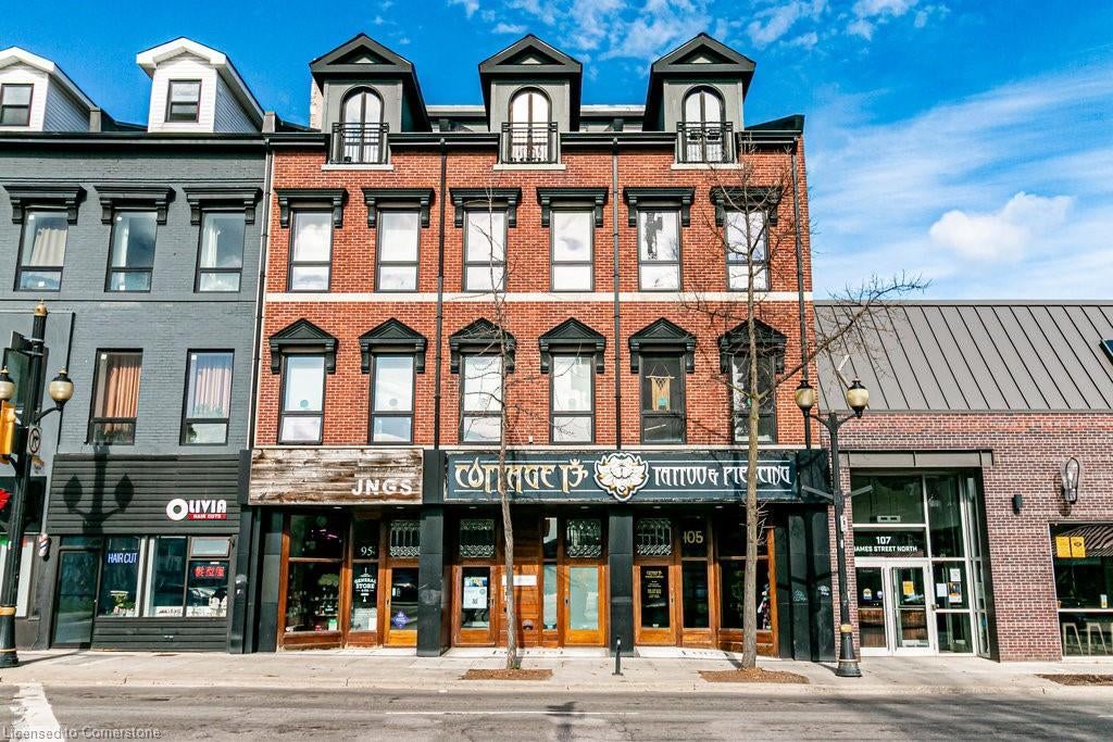 A+ Investment Opportunity! Completely renovated and remodeled mixed use buildings with a 33 car parking lot. 3 x Four Storey Victorian buildings with 2 retail main floor units, 2 office units and 4 apartment units + 33 car parking lot accessed off Vine Street + additional tenant parking behind the buildings. 7357 square feet of top quality mixed use space + 9600 sq. ft. parking lot. Fabulous location and exposure due to orientation of the streets All units have own HVAC and hydro. Quality workmanship, design and finishes throughout. Zoning permits maximum building height—44 metres, A truly rare opportunity and stellar investment for a long term hold