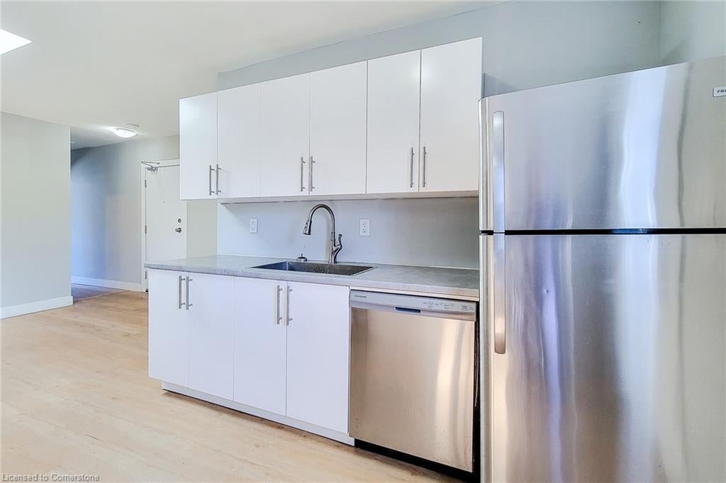 Looking for a flexible layout in a walkable neighbourhood? 308A Barton St. E delivers. This 1 bed + den, 1-bath unit features an open-concept living area, stainless steel kitchen appliances (including a dishwasher), and private in-suite laundry located in the bathroom. The bedroom features oversized windows facing bustling Barton Street, while the additional den offers versatile space for a home office, creative studio, or whatever bonus room you need. Two entrances: one through the living room connecting to a shared stairwell and street front entry, and a private rear entrance off the kitchen. Steps to transit, shops, and restaurants—everything you need is right here.