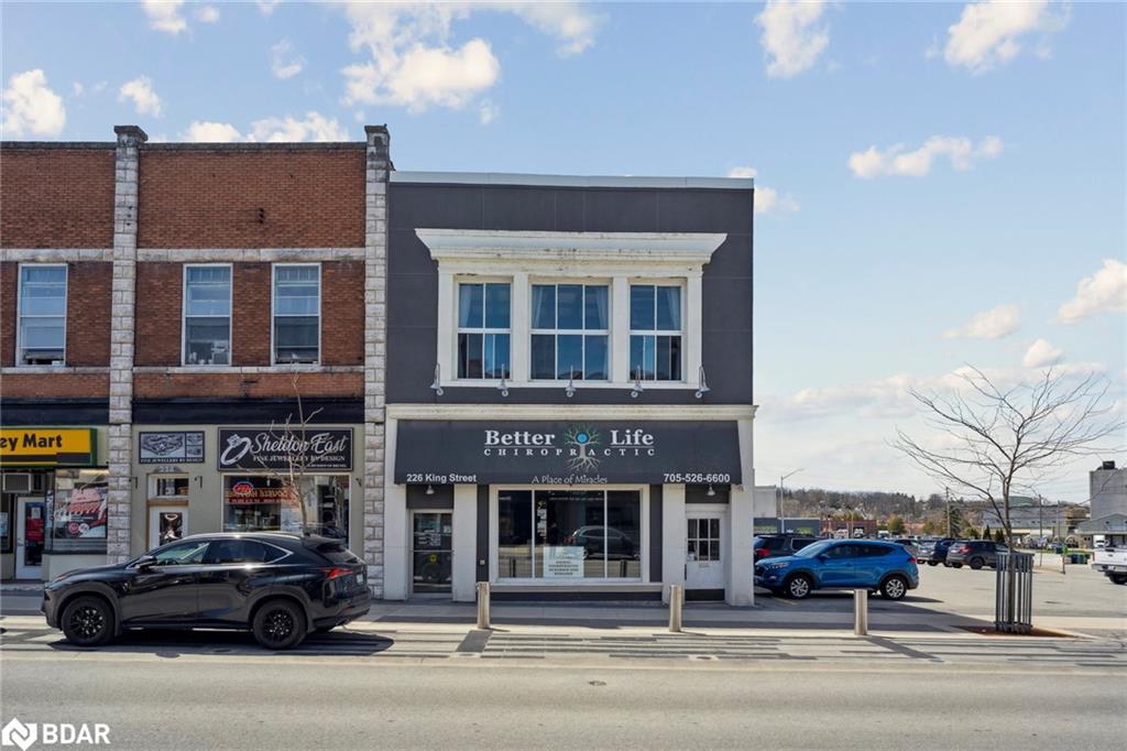 Look no further for an incredible investment opportunity situated in the heart of Midland across from the Harbour. This property offers high visibility and accessibility with plenty of nearby parking, steps to the harbourfront. The building has its beautiful classic architecture, with complete interior renovations having a modern feel. On the exterior of the building, the historic mural featuring the Brebeuf Lighthouse and plenty of parking available. The upper level is a stunning residential living space with 12' ceilings, new kitchen, fresh paint and a beautiful rooftop patio overlooking the harbourfront. The main floor has had $600,000+ invested in renovations and is perfectly set up as a medical office with many potential uses. This multi-use infrastructure is currently set up to live and work within the same building, but easily converted and split into additional units, or fully converted into a different commercial business space such as a restaurant or brewery.