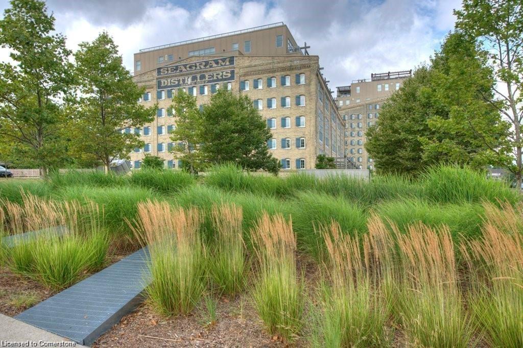 Welcome to the prime Up-Town Waterloo location in historic & sought after Seagram Lofts. A unique and exquisite true loft layout, this home does not disappoint. Perfect for the downsizer or first time buyer and boasting nearly 1,300 square feet. This unit has a warm and welcoming entryway, with lovely windows throughout to allow for natural light to pour in! Enjoy the open concept main floor, perfect for entertaining and hosting. The main floor is host to the kitchen which is open and overlooks the living room and dining room with a convenient 2 pc bathroom for the added bonus. The upper level leads to a large open bedroom space with a full 4 pc ensuite with soaker tub. Insuite laundry and storage space is conveniently located off of the bedroom. The generous windows allow for a bright, airy, and open space. This unit comes with an outdoor parking spot, amenities such as a gym, rooftop terrace, and guest suite. The Seagram Lofts is only a short walk to shops, restaurants, and the vibrant Waterloo Town Square. Waterloo Park just steps away, as well as the LRT, CIGI and more! Photos are virtually staged from similar layout unit. This property shows very well! CONDO FEES INCLUDE HEATING AND COOLING
