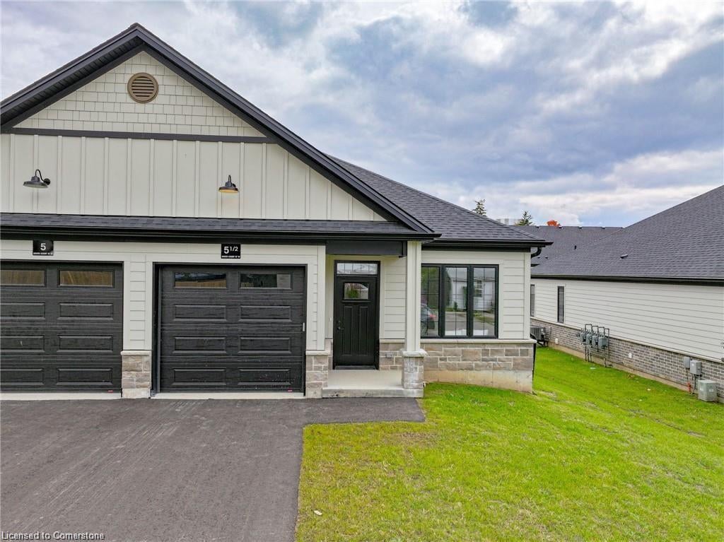5.5 South Court St W is a well constructed Bungalow End Unit Condo with two car driveway. This modern gem is located on a quiet street with prime location close to all of the community's features, just a minute walk up the road from the inviting Harold Bishop Park and walking distance to the naturescapes of the Norwich Conservation Area. This offering is calling first time buyers, down sizers, and commuters to surrrounding cities and towns or the ideal getaway for those working from home. The modern build offers high level workmanship floor to ceiling; including two bright and spacious bedrooms (one that could also function as a beautiful office), a luxurious four piece bathroom with connencted main level laundry, a modern build kitchen with quartz countertop and full suite of quality stainless steel appliances, an open concept living room, a long two car paved driveway with additonal private garage parking, engineered hardwood and porcelain tiled flooring throughout, and an aesthecially appealing exterior facade with brick, stone and modern black features. The hardwood finished staircase leads to an unfinished basement with the same square footage as the main level, offering so much potential for finishing as desired. The basement has a roughed in washroom, large egress window, and cold storage area with sump pump. With Buyer's option to hire the contractor who completed the work on the development to complete the basement with quality finsihes for an estimated cost of $18,000 to $23,000 including a legal third bedroom (with proper egress window), a second bathroom (three piece bath), and a large living room/family room (with option for kitchenette or full kitchen for increased price). The on demand gas hot water tank and gas barbeque connection at the brand new deck are even further offerings. Condo fees include exterior items such as roof, windows, doors, landscaping, lawn care, and condo management/common elements maintainence. Taxes are not yet assessed.
