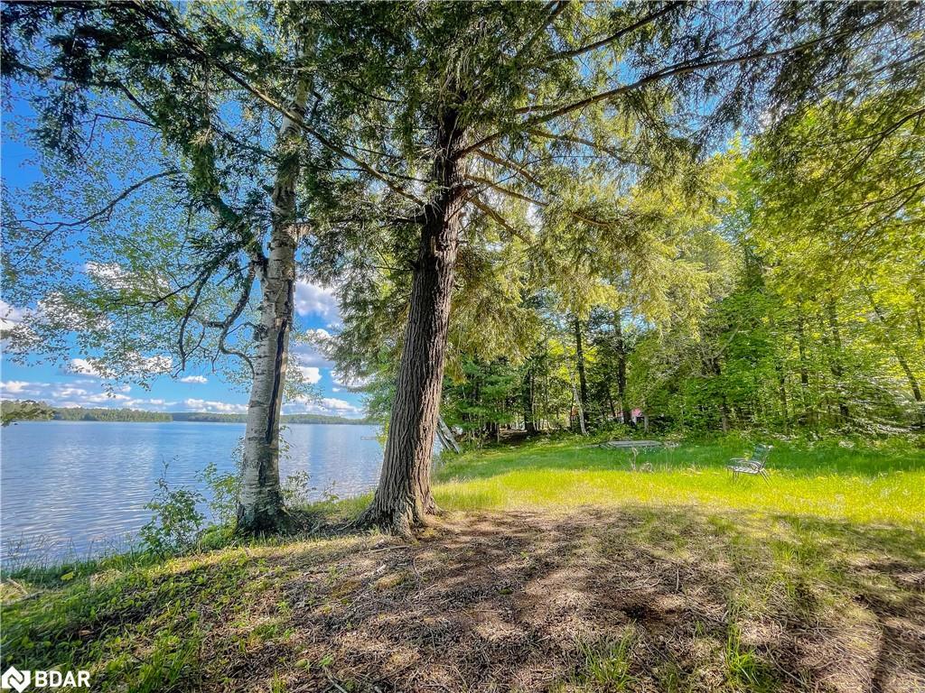 Enjoy direct access to a beautiful, flat, grassy shoreline that gently meets the clear, sandy-bottomed waters of the lake. Ideal for swimming, boating, and water sports, the shoreline offers a perfect setting for family fun and relaxation. The property is adorned with mature trees, providing privacy and a picturesque backdrop. Experience the changing seasons and abundant wildlife in your very own nature sanctuary.