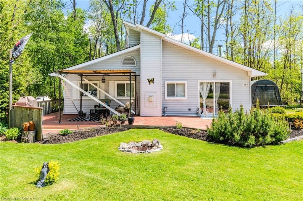 Welcome to the serene setting at Fernbrook Resort, a 50+ lifestyle cottage atmosphere w/clubhouse amenities including an indoor & outdoor pool. This open concept 1-bedroom home sits on a premium pie-shaped lot faces a pond and backs on to a forest!! Home has been recently renovated (2020) from top to bottom, has a beautiful beach vibe, a must see!! Vinyl plank flooring throughout, Caesarstone countertops, top of line appliances. The kitchen is open to the dining room and family room - great for entertaining. The family room boast a beautiful gas(propane) fireplace, the dining room also has a wood-burning stove. 3-piece bathroom, laundry room. Sunny large front deck for enjoying your morning coffee. There are 2 sheds, one on the side of the property and one in the rear for storage. The clubhouse includes tennis courts, indoor pool, gym, outdoor pool, hot tub and suntan deck. Centrally located for quick access to QEW and 401, Waterdown, Hamilton, Guelph, Cambridge. Units cannot be financed or used as collateral for a loan. Lot fees are approx. $801/Month to be verified with park management which includes lot, taxes, water, water testing, and use of the resort amenities. Hydro, propane extra. Buyer must be approved by the Park.