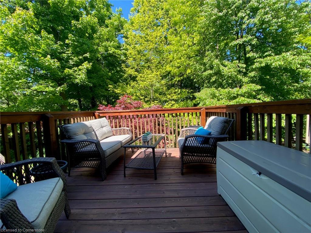 Totally enjoy this gorgeous home inside and out, top to bottom. Premium Lot backing onto private parkland/parkette with large mature trees. There is so much to enjoy and love. This is the original owner who cared for this home. Enjoy this well organized, oversized garage . Entry from the garage to the home. Private driveway & entry. Original owner. Get a warm welcoming feel from this well cared for home. Beautifully landscaped with attention to details. Finished top to bottom. Spacious foyer, upgraded open oak plank stairs. Open concept main floor with kitchen island/stool counter, valance with lights, added pantry and other upgraded kitchen features. B/I microwave. Hardwood floor in living/dining room and breakfast area. 2 beautiful Gas fireplaces, one on the main floor and the other in the lower level family room with a walk-out to the back patio. Walk-out from the kitchen area to a good sized deck. Enjoy your morning coffee or favorite book while enjoying the views. Open concept main floor with room for 2 tables if you really love big family gatherings. Pot lights. Upper levels offer spacious bedrooms. Large principle bedroom with picture window. 3 piece updated bathroom with quartz countertop etc.. Large closets in the upper hall. Bright main bathroom with jetted tub and quartz counter. Builder finished the lower level family room with patio doors and a large picture window to enjoy the beautiful views. Owners maintain and use the parkette. Updates to lower level include: 2 pc. bathroom updated, flooring, french doors into family room, gas fireplace with stone surround floor to ceiling. Furnace Jan. 1st, 2020. Shingles 2015. Small storage Shed. Room sizes approx./ Irregular.