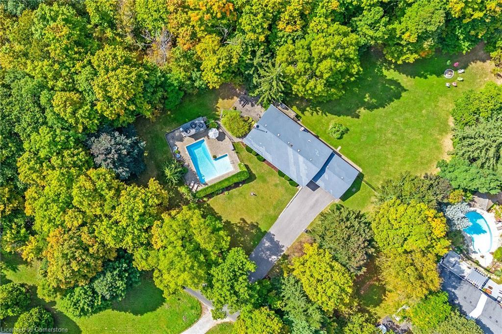 Enjoy the sounds of BRONTE CREEK and birds chirping as you BBQ in your wonderful new back yard! This 3+2 bedroom raised ranch bungalow w/ WALKOUT sits on a STUNNING 1.07 acre lot with a RAVINE along the full length of the property, NO NEIGHBOURS on THREE SIDES and is surrounded by trees for ULTRA-PRIVACY. Located in the highly sought-after village of Kilbride, this home is being offered for sale for the first time by the family of the ORIGINAL OWNERS. The home has lovely curb appeal, sitting back from the street, and features an over-sized living room and dining room w/ newer bay window and French doors to the beautiful yard. The renovated Barzotti kitchen features an abundance of cabinetry, quartz counters, pot lights, SS appliances including a 6-burner Viking gas cooktop and convenient desk area. There are 3 bedrooms on the main level and a 4-pc bathroom. The lower level WALKOUT features two additional bedrooms w/ large above-grade windows, one with a clubhouse cubby, 3-pc bath, large laundry w/ additional storage/workshop space, cold cellar, massive family room w/ fireplace, and den w/ walkout to yard and European roll-down shutters. Enjoy the large HEATED SALTWATER POOL with pool house and two changerooms tucked away for privacy. There is also a fun "camo" clubhouse with walkway and slide, shed for additional storage, firepit and massive back yard for the kids to run and play! Additional features include: steel roof, engineered hardwood on main level, NATURAL GAS HEATING, newer front door, new driveway (2020), new septic pump (2020), 2-car garage with loads of storage and SEPARATE ENTRANCE to BASEMENT from garage. Located close to all amenities, conservation areas, North Burlington Tennis Club, library, numerous golf courses, convenient corner variety store and easy access to major highways. Excellent school district in the desirable Kilbride Public School catchment. Do not miss out on this wonderful FOREVER HOME ... this is the one you have been waiting for!