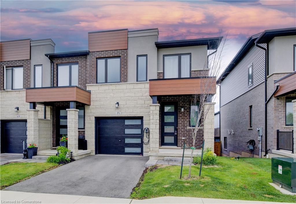 Welcome to a beautiful freehold townhouse with POTL built by Marz Homes in Mountainview neighbourhood, Hamilton Mountain West. End unit with 3 bedrooms, 3+1 bathrooms. Main level with open concept layout, 9ft ceiling, pot lights, gas fireplace, patio deck and a powder room provides a perfect setup for family enjoyment. Second floor boasts a large primary bedroom with 3 pcs ensuite and a walk-in closet, 2 additional bedrooms, 4 pcs bath and laundry. Legal basement is finished with creation room, 3 pcs bath, kitchenette and extra laundry set, ready setup for a bachelor suite. Over $70k spent in upgrades including basement finishing, 200Amp electrical panel, 2 EV chargers (1 in the garage and 1 outside). Walking distance to public transit, school, parks and retails. A few minutes drive to Lincoln M. Alexander Pkwy and Hwy 403. A truly must see property.