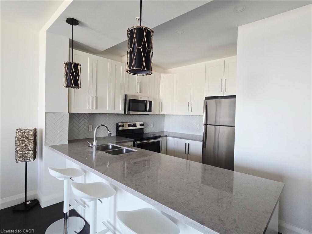 Welcome to Hamilton's most prestigious, historical condo building, the Residences of Royal Connaught. For Sale or Lease....this Amstel Floorplan comes FULLY FURNISHED and offers a large open concept living/dining & kitchen area with an oversized peninsula as well as 2 large bedrooms, 2 full bathrooms, a walk-in closet, and TWO juilette balconies with lake and city views! With loads of upgrades, this well appointed condo features quartz counters, a herringbone backsplash, extended height upper cabinets, stainless steel appliances, upgraded plumbing fixtures including a rainfall showerhead in ensuite, glass shower enclosure, and more. Includes in-suite laundry, Parking & Locker, and lovely furniture throughout, making this a turn-key lease. The building is rich in amenities: a party room, gym, media room, boardroom, and 24/7 building security. Situated in the heart of Hamilton’s revitalized downtown core with a Starbucks and Mucho Burrito located on the main level. Step outside into Gore Park, followed by trendy restaurants, shops, and local culture. Don’t miss this chance to live in a unique urban retreat at the iconic Residences of Royal Connaught.
