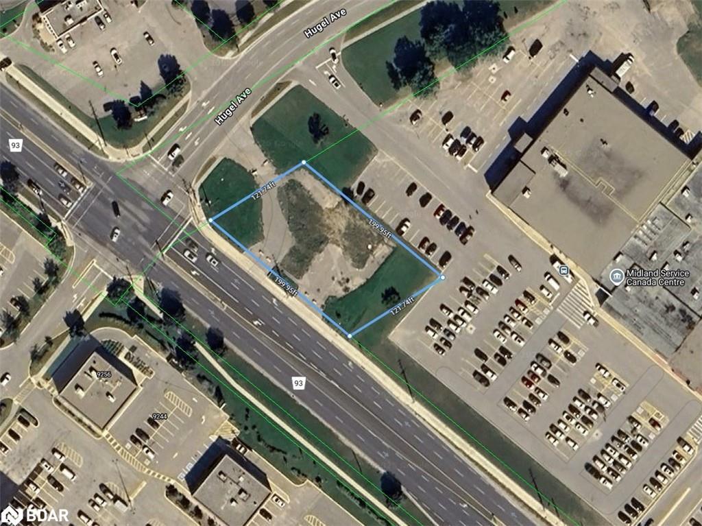 Great corner commercial property for retail use Located at the corner of County Rd 93 and Hugel Ave on the corner of the Huronia Mall which includes Giant Tiger, Dollarama and McDonalds. High traffic major retail area of Midland. Traffic light intersection. It is across the road from Mountain View Mall, a regional mall which includes Food Basics, Galaxy Theatre, Marks Work Warehouse, Dollar Tree, Shoppers Drug Mart, Burger King and more. Sale will include restrictive covenant prohibiting development of a gas station, car wash or e-charging station.