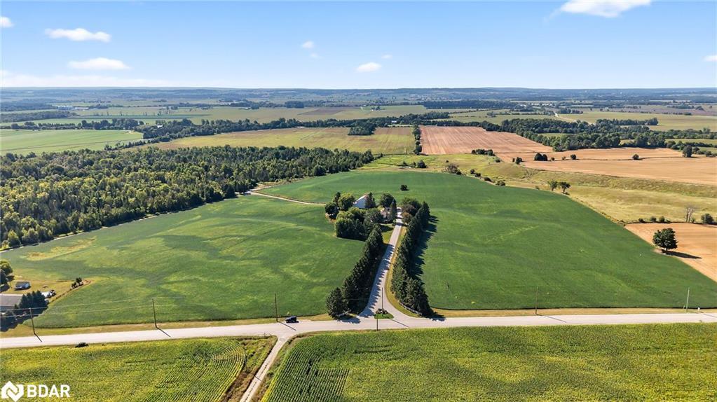 A Private Country Paradise. Welcome to this exceptional 104-acre farm estate offering the perfect blend of functionality, natural beauty, and refined country living. Whether you're looking for a working farm, a private retreat, or a place to create lasting family memories, this meticulously maintained property delivers it all. Set back from the road you'll arrive via a long, paved tree-lined driveway framed by a classic white fence, leading to a manicured lawn and beautifully landscaped flower gardens. The mixed-use land offers productive cash crop fields, forested trails for hiking or ATVing, a private pond, and ample open space for recreation or expansion. The charming 4-bedroom home features a metal roof, covered front porch ideal for relaxing summer evenings, inviting living room with fireplace and walk out to patio, large eat in kitchen, formal dining room great for entertaining and grand primary suite complete with a 4-piece ensuite, wall-to-wall closet, and walk-out to a large private balcony. Outside, enjoy the fully fenced in-ground pool for warm-weather fun, complete with tiki bar. A classic barn, and a detached 4-bay garage offer ample storage and workspace. Dual access to the property provides convenience and flexibility. Whether you're seeking tranquility, an investment opportunity or a place to bring your rural dreams to life, this stunning property located close to the growing town of Alliston has it all. Don't miss this rare opportunity to own a piece of countryside perfection.