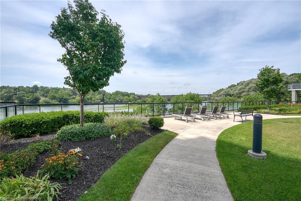 STUNNING VIEWS! 687 Sqft unit, one bedroom plus Den, one bath, open concept great room and kitchen, and 125 Sqft. balcony. Bright and sunny unit with floor-to-ceiling windows that provide an unobstructed view of the city core and the fall-colours, and view of the Grand River and the multiple bridges of the historic and architecturally renowned downtown Galt as well as magnificent sunsets. Walking distance to trails, parks, theatres, boutique shopping, restaurants, churches, places of worship, 2 public libraries, farmer’s market, schools, UW campus, the pedestrian bridge, the Gaslight district, public transportation, minutes to 401, and much more. Condo fees include all utilities except hydro (average $50/month), all amenities are free except the guest suite $75 for 1st night for cleaning. Offers an awesome fitness centre 24/7, Guest Suite, Party Room with walkout to an impressive Garden Terrace with BBQs and dining area for all your entertaining needs, and lounging area overlooking the Grand River. This building has a community living feel with all the social activities for various events including Christmas dinner/New Year celebrations, games night, gardening, book club, and much more. Secured entry building with security cameras.