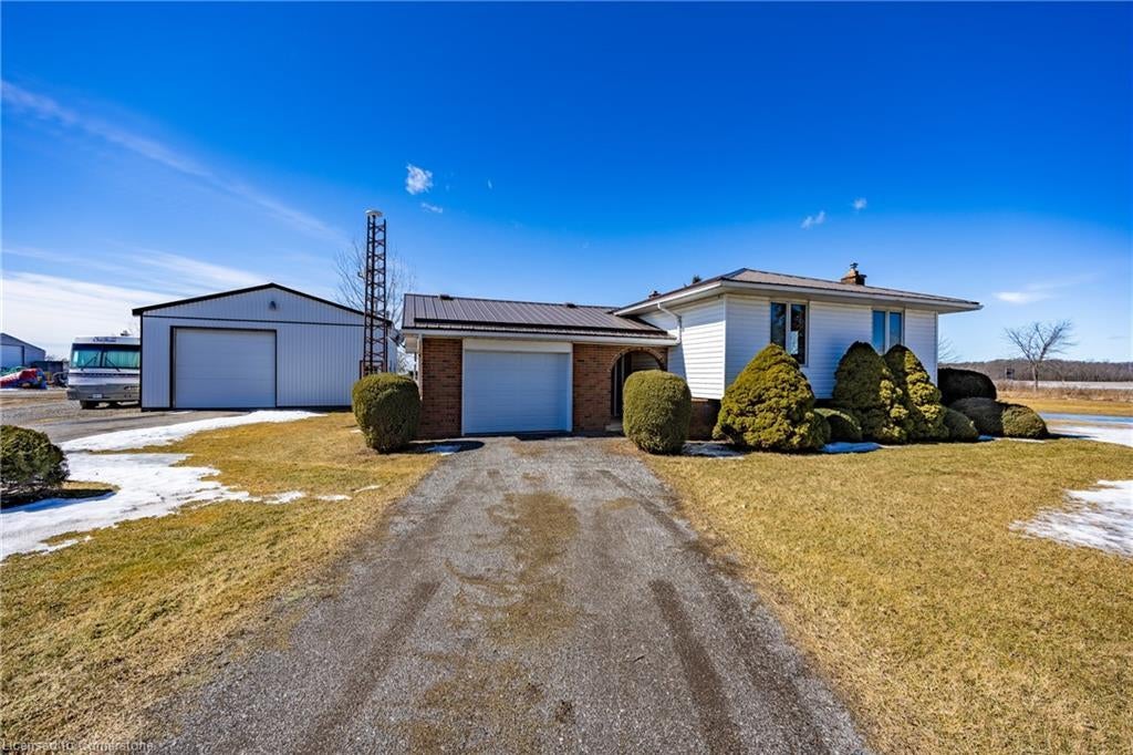 Move in ready raised bungalow with a Great 1350 square foot workshop already onsite. House is actually five bedrooms but one of the main floor three bedrooms accommodates the laundry room. Laundry could easily be changed back to the lower utility room. Large kitchen with decent sized eating area attached. Plus sized living room and dining area. Downstairs is a huge carpeted family room with a gas fireplace. Two more bedrooms also on lower level and the utility room which houses the nearly new gas furnace and owned gas hot water heater. A natural gas standby generator to run the entire house in case of a power failure also. There is a 20ft by 14ft attached garage complete with auto door opener. The 45 ft by 30 ft workshop has a gas furnace, is fully insulated with a 12ft by 12ft roll up door. A copy of Driveway Easement is on file. Great opportunity to get your country fix. Come and have a look!!
