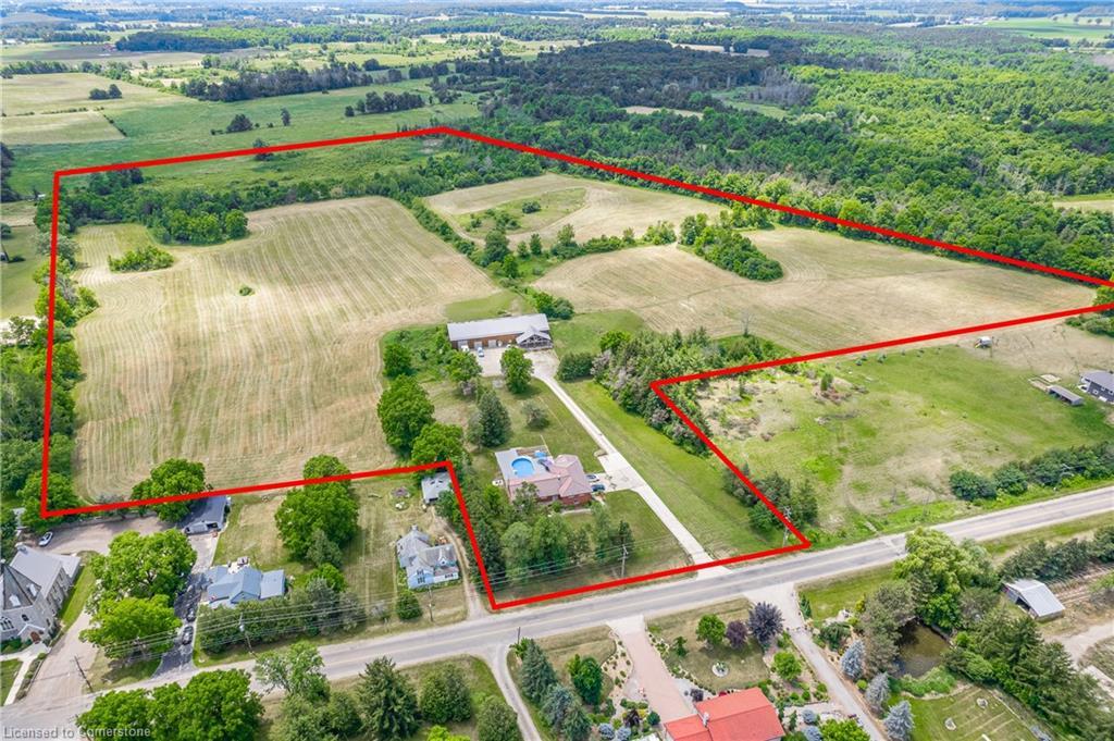 The TOTAL PACKAGE!!! ~6000 sq ft outbuilding & a ~2200 sq ft bungalow, with a grade level walk-out basement, all situated on ~42 picturesque acres. The ~6000 sq ft outbuilding features 3PHASE (600 volts 500 amp) electrical service. In floor heating in the in-law suite & middle bay only. 3 bay doors, office & 3pce bath. PLUS there is a 1 bedroom loft in-law suit. Bright sun filled open concept floor plan. Living room with cozy gas fireplace. Updated kitchen with a huge island with breakfast bar, quartz counters, 36” Wolf stove, stainless steel fridge/freezer & Miele dishwasher. Spacious bedroom overlooking the main floor with wood ceilings. Combination walk-in closet, laundry with full size washer/dryer & 3pce bath. For the INVESTOR there's a potential for great MONEY MAKING OPPORTUNITIES!!! Sprawling ~2200 sq ft 4 bedroom, 3 bath brick home offers a large living room with double sided wood burning fireplace. Eat-in kitchen with a walk-out to a composite deck & above ground pool. Full basement, partially finished with a grade level walk-out. Separate workshop/hobby room. New 125' deep well in 2020. 42 acres with ~30 acres workable. For the owner, you have your own gym (47' X 38'). Close to a full size indoor Pickleball Court, Basketball half court, ball hockey area or Yoga Studio. Other options: pottery studio, arts & crafts, storage for vintage & classic cars or operate a small home based business.