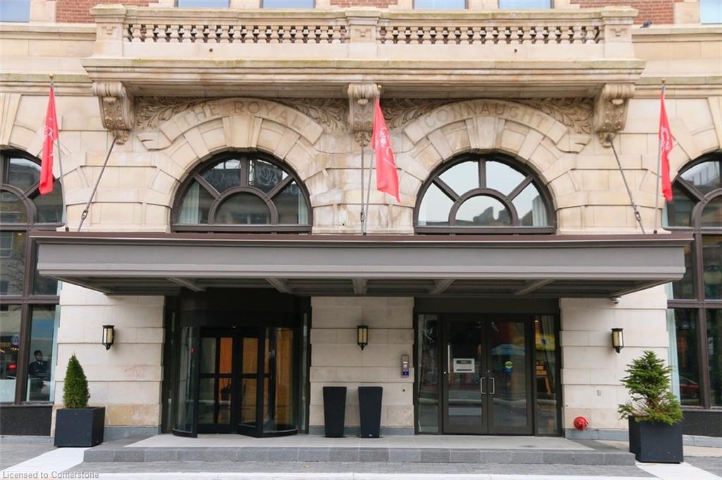 Welcome to this lovely lower penthouse at the iconic Royal Connaught, a beautifully preserved piece of Hamilton’s history right in the heart of downtown. This pristine, sun-filled unit offers soaring 13-foot ceilings, a bright open-concept layout, and southwest views. The modern kitchen is perfect for entertaining, featuring a waterfall quartz island, matching quartz countertops, and custom glass backsplash. The spacious living area includes a custom feature wall with electric fireplace. Enjoy added comfort and convenience with automated blinds throughout, a double vanity in the large 4-piece bath, a custom glass-enclosed tub/shower, in-suite laundry, and a walk-in closet in the primary bedroom. This unit also comes with an owned locker and an underground parking spot. Located just steps to everything you love about city living including trendy cafes, shops, art galleries, restaurants, and the vibrant energy of James Street. You'll also love the easy access to hospital services, transit, and GO Station connections. If you're ready for a blend of luxury, history, and urban convenience, this spectacular condo might just be your perfect match.