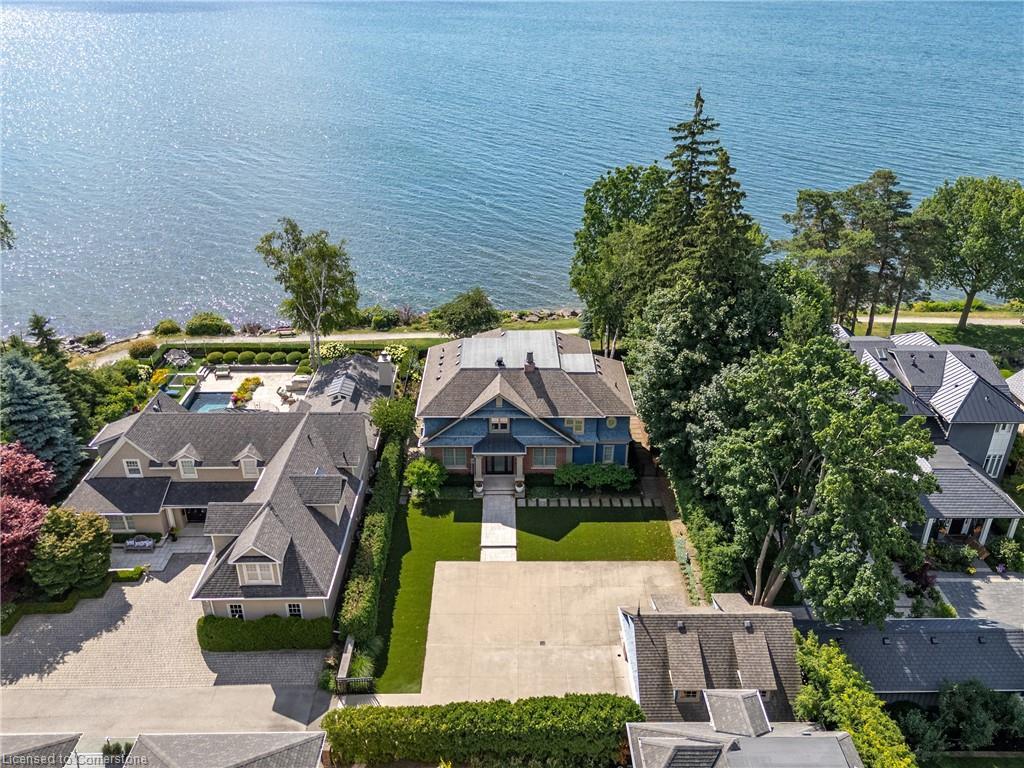 Lakefront Elegance in the Heart of Old Oakville! Welcome to an exceptional waterfront residence that defines refined lakefront living. Nestled at the foot of prestigious Chartwell Road, this private and serene estate offers the rare blend of Muskoka-like tranquility with the convenience of being just moments from the heart of downtown Oakville. Completely reimagined in 2019 with a recent masterful renovation inside and out, this home has been thoughtfully curated under the direction of acclaimed architect & designer Rodney Deeprose, and constructed by the esteemed Horne Construction. Every detail exudes elevated taste, from the marble inlay foyer and double-sided stainless steel fireplace to the carefully selected finishes throughout.The open-concept main floor is flooded with natural light, thanks to a dramatic wall of Kolbe windows that frame breathtaking lake views. Designed for both grand-scale entertaining and intimate family gatherings, the space flows seamlessly through the principal rooms. The gourmet kitchen is a showpiece, featuring Cambria quartz surfaces, Bloomsbury cabinetry, premium appliances, a walk-in pantry, and a fully equipped servery.The principal suite is a sanctuary unto itself—wake to unobstructed lake views, enjoy morning coffee and unwind in the luxurious 5-piece spa-inspired ensuite with heated floors and oversized walk-in California Closet. A screened sunroom, accessed directly from the suite, provides a peaceful space to enjoy the sights and sounds of the lake year-round.Two additional spacious bedrooms, designer-appointed main bath, and a large laundry complete the second level. The professionally finished lower level offers a generous recreation space, fourth bedroom, and a full 4-piece bathroom featuring a steam shower—perfect for guests or extended family.Outside, an expansive stone patio with gas fireplace extends your living space practically to the waters edge with gated rear entrance to trail access. Generous garage with loft!