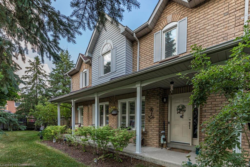 Bright and spacious 2 story end unit townhome with welcoming front porch in well maintained Dundas condo complex. Updated open concept kitchen with cork flooring. California shutters, hardwood flooring in some areas. The main level features a den/office in addition to dining room and family room. Fireplace is disconnected and not been used by owner. This lovely home also features 3 bedrooms plus 3.5 baths. Finished lower level could be teen retreat or extra living space with extra den/bedroom, family room, 3 piece bath, extra kitchen and laundry/storage area. Single garage with inside entry. Updated patio and deck in 2023 and dishwasher in 2025. Condo corp has updated roofs, garage door, exterior door painting, newer windows and roads in the complex all within about the last 7-8 years. Family friendly complex close to parks, trails and schools. Bell Fibe internet is currently included in condo fees along with a Bell TV package. Visitor Parking is plentiful!