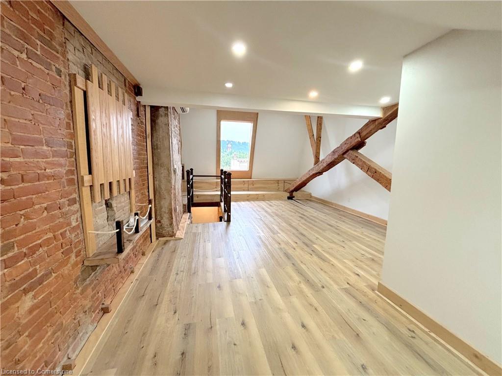 Located in the vibrant heart of Dundas, this charming two-story unit beautifully blends modern comfort with historic character. The recently renovated kitchen, spacious bathroom, and unique second-floor bedroom make it truly move-in ready. Start your mornings by the cozy fireplace in the expansive open-concept living room. Set within a historic building, this home captures the timeless charm of Dundas while offering contemporary living. Step outside to discover a lively community with local restaurants, boutique shops, craft breweries, public transit, scenic trails, and tranquil parks—all just moments away. It’s the ideal balance of urban convenience and serene surroundings.