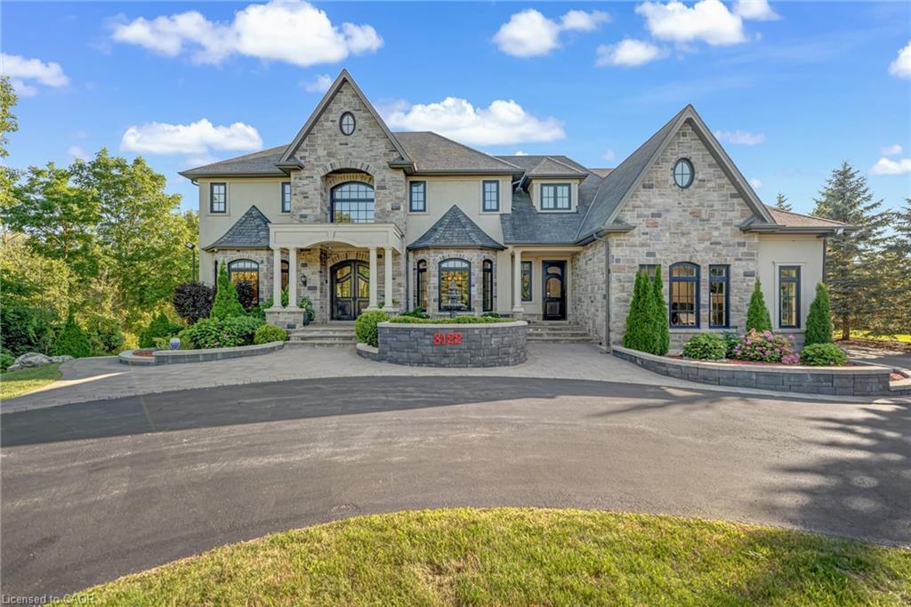 LUXURY| Captivating Setting | Custom Jay Robinson Estate | 1.95 Acres of Refined Living | 5 Bed | 6 Bath. Custom-built estate by Jay Robinson. Spanning nearly 7,500 sq. ft. of meticulously crafted living space, unmatched blend of luxury, comfort, & privacy. Nestled amidst conservation lands & scenic horse farms. Inside features: soaring 18-foot vaulted ceilings, a dramatic limestone feature wall, custom millwork, complete-home Sony sound system perfect for entertaining or quiet evenings in. The chef-inspired gourmet kitchen is equipped w/premium appliances by Wolf | Liebherr | Marvel |Miele | Fisher & Paykel. The luxurious primary suite features dual walk-in closets, spa-like ensuite, & private balcony overlooking tranquil countryside vistas. Designed for year-round efficiency & comfort, the home inc. dual furnaces, A/C units, wells, hot water tanks, triple sump pump system w/ battery backup. A Generac generator- 20KW providing full-home power assurance w/ a 200-amp panel. Oversized 3-car garage complete w/2- EV chargers, reflecting the property's commitment to modern sustainability. Outdoors, enjoy a resort-style pool complete w/built-in lazy river & cascading waterfall. Swim spa hot & professionally landscaped gardens. A basketball pad is perfect for recreational use & potential retrofit for multi-sport play, inc. Pickleball. Night-lit gardens w/ water feature further elevate the ambiance. Cabana w/ 5-piece bath, built-in BBQ, & dedicated al fresco dining area. Recreational amenities include a mini putt golf course & expansive open space designed for entertaining. The lower level offers a separate walk-up entrance and is primed for customization with rough-ins for a kitchen and 2- bathroom is ideal for a future in-law suite or guest retreat. Potential for an elevator installation. This exceptional rural estate offers complete privacy, timeless style, a true resort-like lifestyle, minutes from top-tier amenities such as Costco & renowned Bruce Trail.