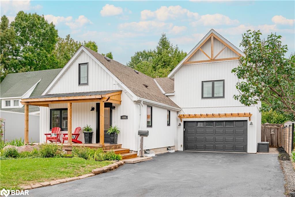Charming, extensively upgraded 3-bed, 2-full bath home in Orillia's desirable North Ward, backing directly onto Couchiching Golf & Country Club! This farmhouse-style, 2-storey property sits on a deep 198' lot and offers just over 2,000 sq ft of beautifully finished living space. A striking board & batten vinyl exterior, custom front porch and professionally landscaped perennial gardens create exceptional curb appeal and privacy. R2 zoning allows for addition of Garden suite or small secondary residence in large back yard. Since 2022, the home has undergone tasteful updates including all new windows, a stylish custom kitchen with island and stainless-steel appliances, upgraded flooring, a fully renovated upstairs bathroom, porch and decking expansion and added built-in bedroom closets - nothing left to do! The bright, open main floor is flooded with natural light, while the backyard offers a tranquil, tree-lined oasis that wraps you in natures serenity - making the city feel a world away. Additional features include a bonus family room on the upper level, a partial basement offering extra storage space, a-drive through attached garage, garden shed, central air, natural gas heating and full municipal services. The fully fenced yard backs directly onto the golf course, offering peaceful fairway views framed by mature cedar hedging. Located on a quiet street just minutes to schools, the waterfront, downtown Orillia, big box stores, and Hwy 11. A rare offering in this mature north ward, family-friendly neighborhood move-in ready with the perfect blend of character, upgrades, and location. View the 3D tour, photo slideshow to music below then book your showing. This is one solid investment you will definitely want to call home!