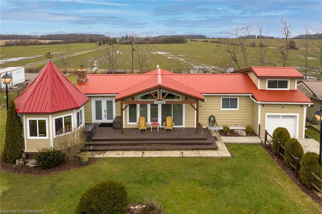 Imagine living in this exquisite 3-bedrm chalet-style home, right across from Lake Erie's beautiful shores! With a rare 0.47-acre L-shaped lot and 100 ft of frontage, you'll have stunning lake views and a fantastic sand beach just a short stroll away. This place is all about relaxation, recreation, and creating unforgettable memories. Inside, enjoy luxurious upgrades, vaulted ceilings, a cozy wood stove fireplace, and charming wood beams. The open-concept main floor offers breathtaking lake views, a custom kitchen with quartz counters, and a spa-like bathroom. The principal bedroom retreat even has a home office with fiber-optic hi-speed internet for all the hardworking professionals out there. Plus, the lower level includes a comfy family room, convenient 2pc powder room, and laundry closet. Step outside to the south-facing deck and take in the panoramic water views from the beautiful turret top gazebo. Park your vehicles and boat or RV in the attached garage, concrete driveway, or the bonus gravel parking lot with 2 large truck-box containers for storage. You can potentially build a 1,000 sqft secondary suite/bunkie/rental unit, subject to Haldimand County requirements. The shoreline across the road is protected by a break-wall owned and maintained by Haldimand County. Located just 20 mins from Dunnville and the hospital, and only a 1-1.5 hr drive from Hamilton, Niagara, and Toronto. Don't let this amazing opportunity to embrace the Lake Erie lifestyle slip away. Fishing, boating, bonfires, and so much more await you!