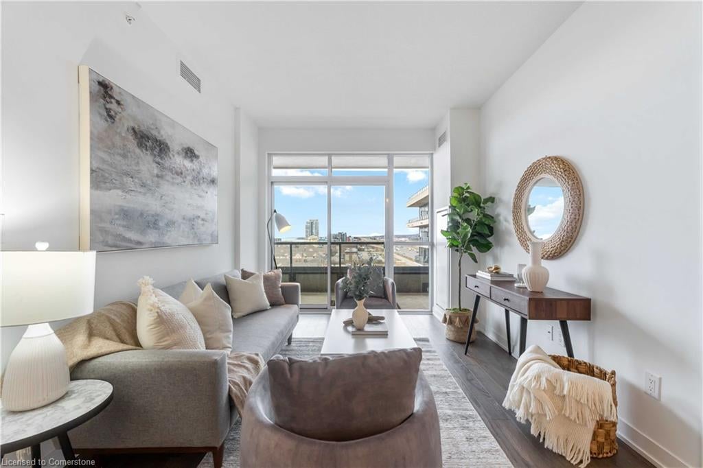 Step into this beautifully updated condo offering nearly 850 sq ft of stylish interior living plus a generous 207 sq ft balcony. Bright and airy with floor-to-ceiling windows throughout, this sun-filled, carpet-free unit delivers natural light and stunning views from every room. Freshly painted and thoughtfully designed, the open-concept layout includes a modern kitchen with a large island, stainless steel appliances, and sleek cabinetry—perfect for entertaining. Enjoy breathtaking Lake views from the living area or step out onto your private balcony to unwind. The spacious primary bedroom features a walk-in closet and a 4-piece Ensuite, while the spacious second bedroom offers a large closet, providing ample space for a small family to enjoy. Maintenance fees include heating, cooling, and water. One underground parking spot and a storage locker are also included. Residents enjoy access to premium amenities like a rooftop terrace, gym, yoga studio, games room, boardroom, bike storage, and visitor parking. Ideally located near the QEW, and just minutes to Costco, Walmart, Metro, waterfront trails, shops, wineries, and more. Live connected to nature and convenience.