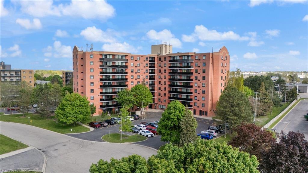 Welcome to one of Brantford's most desirable and well-managed condominium buildings! This bright and inviting 1-bedroom unit offers comfortable, low-maintenance living with everything you need in a thoughtfully designed layout. Inside, you'll discover a spacious living room, cozy dining area, in-unit laundry, and a versatile storage room. The renovated 3-piece bathroom offers sleek, modern finishes, while the private balcony is the perfect spot to enjoy your morning coffee or unwind in the evening. This unit also comes complete with a dedicated parking space and a private storage locker. Residents of this sought-after building enjoy access to a range of amenities, including a well-equipped gym, a party room for gatherings, secure entry, elevators, and ample visitor parking. Condo fees include snow removal, landscaping, building maintenance, water, building insurance, and even windows, offering exceptional value and peace of mind. Ideally located on a quiet cul-de-sac in Brantford's North End, you're just minutes from highway access, public transit, shopping, and restaurants. Whether you're a first-time buyer, downsizer, or investor, this is a rare opportunity to enter this well-cared-for building with a strong community feel.