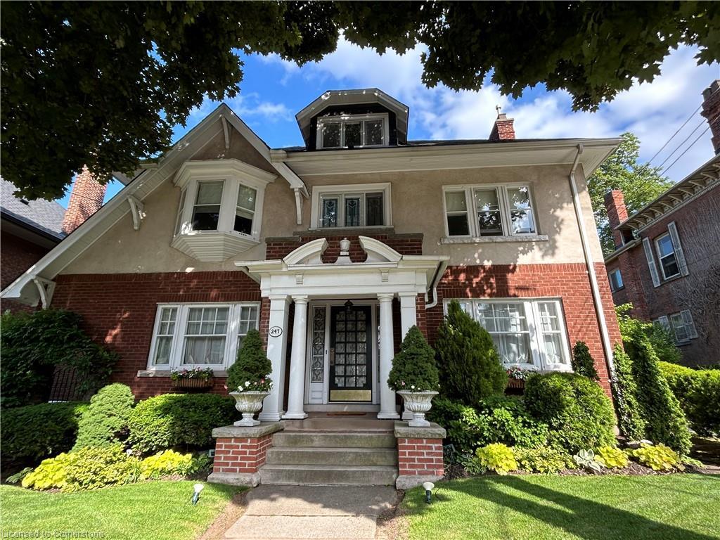 Circa 1922, this stately 2.5-storey is situated on a mature 46’ x 85.33’ property in the heart of the historic Durand neighbourhood, showcasing classic curb appeal with a front walkway leading to a covered porch framed by Doric columns. Gorg entry door adorned w/ original wrought-iron grillwork. Step inside to the elegant foyer w/ crown moulding & a sweeping staircase w/ ornate woodwork. French doors lead to the formal living room feat a gas FP, an intricate mantle, & windows overlooking the front/rear gardens. Formal din rm w/ built-in cab, leaded stained glass windows, & detailed millwork. The kitch feat limestone flrs, custom cabinetry w/ bevelled glass, pantry, marble counters, luxe S/S app incl a Miele dishwasher, Viking gas range & Sub-Zero fridge. Convenient mudroom w/ a dbl mirrored closet completes the main lvl. A landing of leaded stained glass windows leads to the 2nd lvl, feat a 25.9' x 13' primary w/ a sitting area, dual closets, & access to the den, 2 add bdrms, one w/ a bay window & ensuite, the other w/ garden views & den access, & a 4-pc bath w/ Jacuzzi tub, leaded stained glass windows, & hand-painted murals. The den is a serene retreat w/ custom shelving & garden views. 3rd lvl w/ 4th bdrm, 3-pc ensuite, skylights, gas FP, storage & 2 sitting nooks. The lower lvl feat laund facilities w/ custom cab, a 2-pc bath, ample storage, & workshop areas. Outside, enjoy the private, landscaped yard w/ an arched brick wall w/ iron gate, water fountain, covered composite porch, awning, gas BBQ, det 1-car grg w/ surf parking for 2 accessible via a laneway & more. This exceptional home feat hrdwd flrs, custom window coverings, c-air, alarm system, HEPA air purifier, rad heating w/ gas boiler, & stunning original features from trim to stained glass. Walkable access to Locke Street’s mix of boutiques, cafes, & dining, art galleries, theatres, hospitals, & GO Transit. Minutes from MAC, parks, hiking trails, & several of the city’s scenic escarpment accesses.