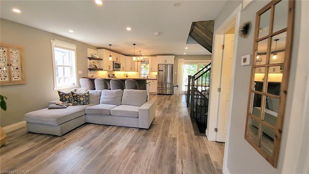 Stunning show-home style renovation in this rare 3-bed, 2.5-bath 2-Storey including a master with lush full ensuite and an outdoor patio to die for. The plumbing, electrical, furnace, AC, roof, windows, and siding were all replaced in 2019 with the second floor addition. If you're after a nearly-new 2-storey family home in the prime and mature Hamilton Mountain neighbourhood of Hampton Heights, with private driveway and private yard, this rare find is for you. Large covered front porch with shiplap ceiling and exterior potlights. Luxurious design and finishes throughout, including a dedicated mudroom off the entry, with custom bench and storage, main floor powder room with unique vanity and lighting, sprawling open-concept main floor layout, with a showstopper of a kitchen featuring plentiful granite countertops, top-quality appliances highlighted by a 36" counter-depth fridge and Blomberg dishwasher, plus an 8-foot live-edge walnut breakfast bar overlooking the living room. The family-sized separate dining area boasts an 8-foot glass sliding-door walkout to the patio. The patio! A massive 200-square-foot covered entertainment zone with 11-foot ceiling, overlooking the very large and private yard, with built-in gas barbecue, professional interlock stone and shiplap lined ceiling with potlights. Full three-level oak staircase leads to the second level, where all bedrooms have double or triple windows, and the primary retreat boasts a 9'x5' walk-in closet and elegant 3-piece ensuite featuring a glass walk-in shower. The second large bedroom also has a 6'x5' walk-in closet, and has an ensuite privilege to the main 5-piece bathroom with a generous double-sink vanity. The full basement has a plumb-in ready for a 3-piece bathroom, along with laundry and utility area. This property is the total package.