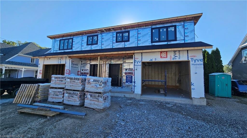 Welcome to this stunning, brand new 1,887 sq. ft. semi-detached home crafted by renowned builder Venture Homes, situated in an established Hagersville neighbourhood. Featuring a bright and spacious main floor with engineered hardwood, this home offers large principal rooms perfect for entertaining and family life. The chef’s kitchen boasts quartz countertops, an island, stylish backsplash, under-cabinet lighting, and soft-close cabinetry. Upstairs, three oversized bedrooms await, including a primary suite with a huge walk-in closet and a convenient ensuite bath. Enjoy the practicality of a second-floor laundry room and a total of three modern bathrooms. Additional upgrades include central air, an insulated garage with automatic opener and a 10’ wide door, a covered front porch, elegant wood railings with steel balustrades, 5” baseboards throughout and ideally situated on a 140’ deep lot offering rear access from a rear alley. Attractive financing guaranteed 3.99% for 3-5 yr mortgages 25 yr amortization OAC. The home is Tarion-certified for peace of mind, and the location is unbeatable—close to schools, shopping, and the hospital. Move-in ready with no disappointments!