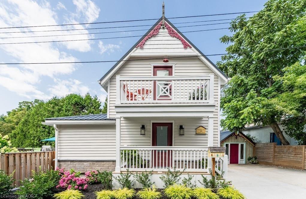 The whole package is right here! Huge fenced yard, stunning curb appeal and beautifully updated inside and out, perfectly situated within sought after Grimsby Beach District, this adorable gem is situated on the second lot (oversized and legally described as Lot 190-193) from the shores of Lake Ontario and boasts lake views from the Living, Dining Room, Primary Bedroom plus upper balcony, be sure to reference lake view photos here! Gorgeous extensive professional landscaping, very private fenced yard with decking, gazebo, and above ground pool, make this home a complete entertainer's splash splash paradise! Charming gingerbread trim, new metal roof, house front and back soffit/facia/eavestrough with gutter guards, two full baths, sparkling kitchen overlooks Dining/Living and Sunroom, and most important of all the basement has been excavated under permit/Architect drawings with new concrete, insulated, heated and central air. (Central air July 2025) Lots of living space here, in addition to the spacious Living/Dining Room is a main level bedroom with new loft door, and a sun filled Family Room which overlooks gazebo and huge private fenced backyard. The detached 321 sf Carriage Shed measuring 19.7'x10.7' could be a fun man cave or she shed, perfect hideaway, reflection space, or perhaps finish for a private home office! The Painted Ladies of Grimsby Beach, this particular classy lady has been updated in fresh modern decor while still maintaining the vintage warmth. Known as the "Woodhayes" once belonged to the Lister family 1888-1917. Exceptional curb appeal here, charming front porch plus upper balcony with lake views, huge lot and quite an eye catching masterpiece as soon as you turn onto this tiny street boasting only 5 residences in total!