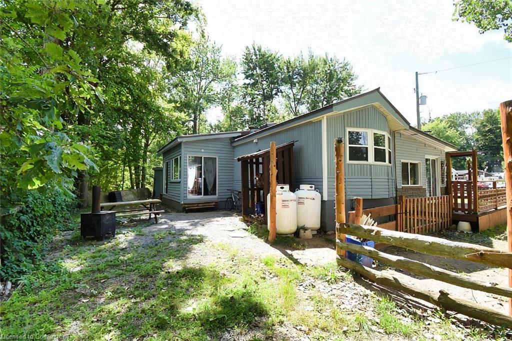 Welcome to the Ponderosa Nature Resort, a tranquil and inclusive environment for nature enthusiasts looking to relax, and enjoy recreational activities in a clothing-optional setting. This community has strict policies regarding guest conduct to ensure a comfortable and respectful environment for all. Lots of amenities including resort style indoor and outdoor pool and clubhouse, events, volleyball and tennis courts, and surrounded by conservation areas with trails. This year round, one floor home is approx 1210 sq ft featuring an open concept floor plan with laminate and hardwood flooring throughout, family room or primary bedroom with propane gas fireplace, walk in closet. Neutral decor. Open concept white kitchen with live edge counters and hands free faucet which opens to the step down live edge living room area that looks onto the green space. 4pce bath with newer double sinks and faucet, den for guests. Fees are 1350/month & incl water, prop taxes, garbage removal and buyer must be approved by the Park. Bonus: Laundry area, forced air heating/cooling, newer fascia, backyard fenced in.