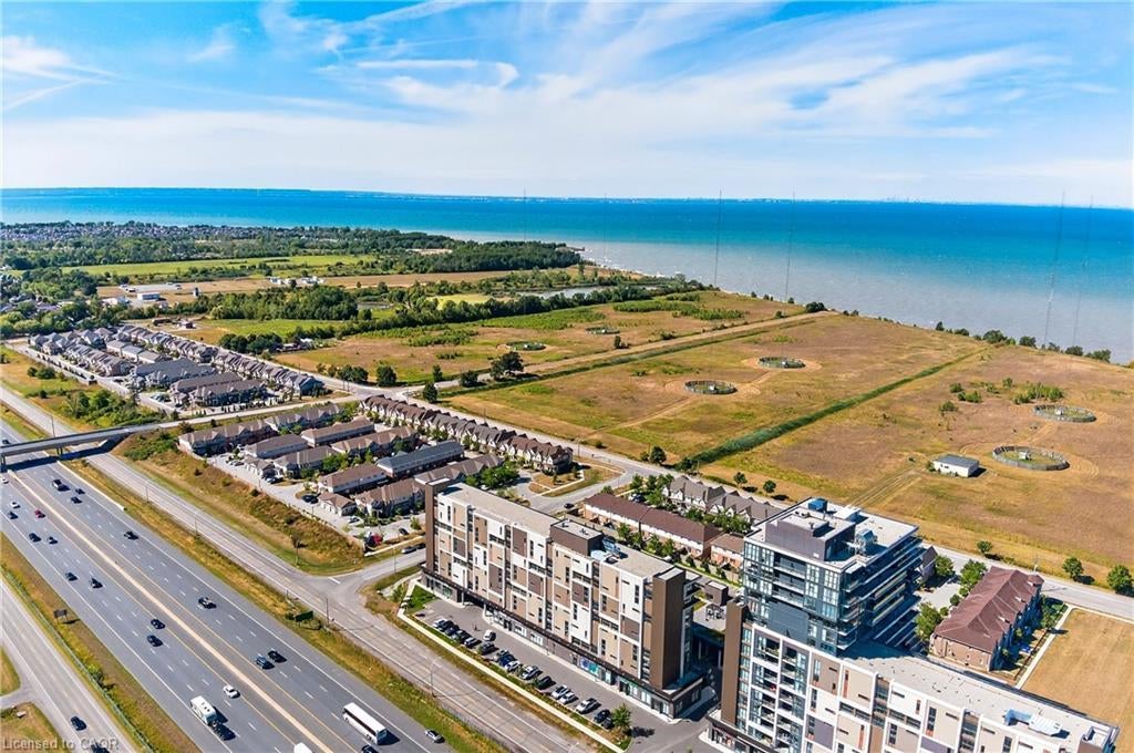 Welcome to Unit 505 at 560 North Service Road, where lakeside living meets everyday convenience. This 1-bedroom + den suite offers 698 square feet of bright, modern space with 1.5 bathrooms, an open layout with a rare oversized personal balcony boasting spectacular views of Lake Ontario. The sleek kitchen features SS appliances, stylish cabinetry, and plenty of room for comfortable, casual dining and entertaining. An oversized laundry room doubles as a utility/storage space, while large hallway windows bring natural light and escarpment views to your entryway. The primary bedroom offers a walk-in closet and ensuite, and the den provides flexibility for a home office or guest room. This pet-friendly building includes a rooftop terrace with BBQs, fitness centre, yoga room, bike locker, upscale party room, games & board room, and more. A large storage locker is conveniently located near your assigned parking space. Exceptional concierge service adds an extra touch of comfort. Beyond your door, explore Grimsby on the Lake with local favourites like Tim Hortons, a bakery, dental and physio clinics, and Costco just minutes away. Enjoy weekends at Grimsby Beach Village or stroll along the waterfront. With quick QEW access, commuting is simple. Perfect for first-time buyers, busy professionals, downsizers, or retirees seeking low-maintenance living with a lifestyle upgrade. Measurements are approximate. New Property Management, CPO Property Management Inc., effective Sept 1, 2025.