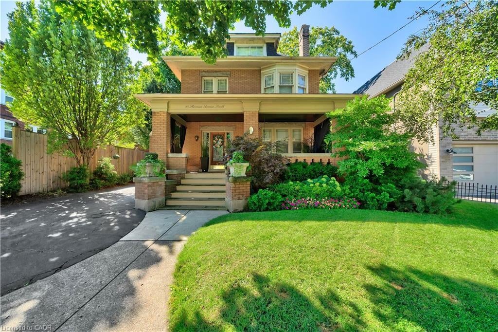 Presenting 98 Sherman Ave S! This 2.5 Storey brick home blends the beauty of early 20th century Hamiltonian architecture, with modern finishes and luxuries. Many original gems have been tastefully preserved and maintained throughout including the original oak floors, pocket doors, stained glass and much more. The backyard has custom-made pergolas and is fully fenced to ensure the outmost privacy when relaxing or entertaining. Through the front porch we enter into the front hall, where you're welcomed by a lovely dining and living room, along with a four-piece and updated bathroom. Continuing further we enter into the renovated kitchen which features new Frigidaire Gallery Series appliances (2024), as well as access to a mudroom with main level laundry and a rear door to the backyard. Up to the second level where there are four bedrooms including the primary, which features an additional full room with ample built in closet space, and another four-piece renovated bathroom. The loft is finished for additional space to utilize as a family or workout room along with a fifth bedroom and/or office space which faces the front of the property. One of the best features of the property is the separate entrance leading to an in-law suite with two bedrooms and a third, four-piece bathroom. This space can also easily be reclaimed for those looking to utilize the entirety of the home. Heat pumps were installed to compliment the original heating system as well as provide cooling (2024). This home represents an excellent opportunity for those seeking multi-generational living, income assistance from the basement unit or end users alike. Neighbourhood amenities include but are not limited to: Hamilton Stadium (Formerly Tim Hortons Stadium), the Playhouse Cinema, Mai Pai Restuarant, Rooney's and Festival Cafe, Buddy's Roadhouse, The Capitol Bar, Gage Park, along with excellent day care options and schools including French Immersion.