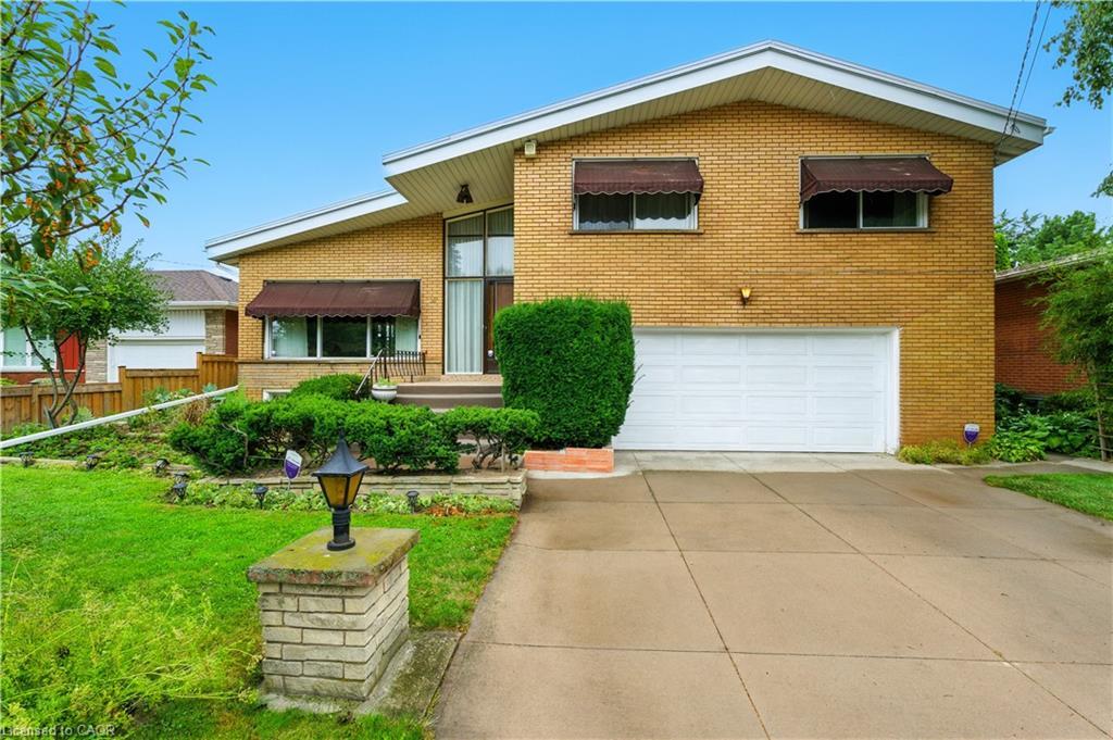MID-CENTURY MODERN GEM IN CENTRAL HAMILTON MOUNTAIN Welcome to 16 Southill Drive, a custom-built 4-level sidesplit showcasing timeless mid-century modern architecture and character details rarely found today. Ideally situated in a central pocket by Bruce Park, just two blocks from the Mountain Brow, this location puts you literally five minutes from everything, including shopping, schools, transit, and all major amenities. Step inside the grand foyer with soaring cathedral ceilings and a striking solid mahogany wood accent wall, setting the tone for the craftsmanship throughout. Sun-drenched interiors are enhanced by oversized windows, and thoughtful design that highlight the home’s unique character. The top level offers three generous bedrooms, each with oversized closets, along with a spacious four-piece ensuite privilege bath. On the main level you’ll find a dramatic entry foyer, an inviting eat-in kitchen, and an expansive living and dining room designed for gatherings and entertaining. The lower level features a cozy family room with a wood-burning fireplace, a convenient two-piece bath, French doors that open to the backyard patio, and inside entry from the double garage. The basement is fully finished with a large recreation room, wet bar, second kitchen, and a three-piece bath with laundry, providing excellent potential for an in-law setup, extended family, or a versatile entertainment space. Notable updates include a brand new state-of-the-art boiler (2024) powering efficient radiant baseboard heating, along with central air conditioning supplied through forced air to ensure year-round comfort. Additional updates include eavestroughs replaced in 2025. Exterior highlights include a double garage, a double concrete driveway, and a mature lot with inviting patio spaces surrounded by lush greenery. This is a rare opportunity to own a true mid-century modern home, custom built with high-quality materials and endless character.