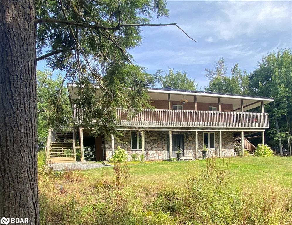 Private country home retreat with open concept and wrap around decks with 58 acres and trails throughout the property. Two full finished floors with 3 bedrooms and 2 bathrooms and two extra large rooms with an exercise room and an office. Beautiful garden area plus a large double detached barn style garage 30 x 30 with a loft for storage or a workshop. A great home and property for a family or lots of extra room for guests. Located nearby access lakes, Marinas, beaches and 5 golf courses located nearby. Several walkouts to the wraparound deck and level entry. Great trails to walk all around your own property. High efficiency propane heating and air conditioning. Wood cookstove WETT certified for extra heating or even cook your breakfast. Airtight woodstove in the lower level if you like a fire because you have 58 acres and lots of trees and firewood. Lots of deer and wildlife and birds to enjoy your privacy. This home has the potential for two seperate residential units. Either as two seperate income units, or as an in-law suite. Two seperate entrances already exist. The lower floor has a gas fireplace as its heating source and the upper unit has a high efficiency Gas furnace and a modern certified wood cookstove.