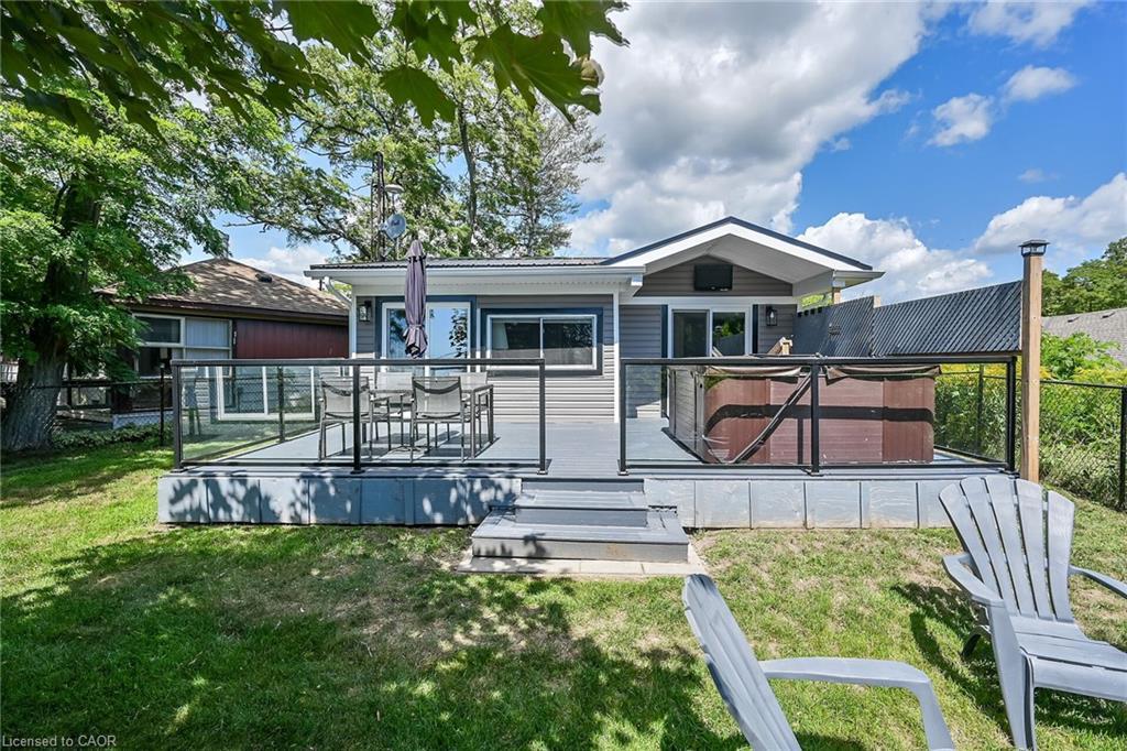 investment potential, and breathtaking lake views. This home has received over $100,000 in upgrades in the last three years and is move-in ready. Featuring two bedrooms including a spacious master suite with patio door walkout to a lakeview deck plus a bedroom for guests. Enjoy a brand-new kitchen with granite countertops, marble backsplash, and $20,000 in premium stainless-steel appliances including a stackable washer & dryer. The bathroom has elegant porcelain tiles and a glass-enclosed shower with a rain shower head. Comfort is ensured with forced air furnace, central air-conditioning and efficient radiant heat drawn from the hot water tank into the furnace. Additional improvements include a new 200-amp electrical panel, natural gas hookups, lake-fed seep well, a2000-gal water cistern, 2000 gal holding tank, an insulated crawl space, and attic storage. The exterior features include a glass-railed deck with a comfortable seating area, views of the lake, a premium 2021 Grizzly hot tub from Arctic Spas, and a fully fenced yard. Enjoy deeded access to a private sand beach just steps from the property, including a parking space. The Port Maitland pier/lighthouse, marina, sailing club, golf club and public boat launch are all within walking distance. Enjoy all that the Lake Erie lifestyle has to offer; great fishing, bird watching, boating, watersports, bonfires, beautiful sunrises & sunsets or just leisurely strolls along the shoreline. Dunnville’s amenities and the hospital are about a 10-min drive. Hamilton, Niagara or Toronto are about 1 to 2 hour commutes. For builders or those dreaming bigger, the sale includes previously home plans for a brand-new dwelling with a walkout basement and garage. Whether seeking a personal retreat, an income-generating property, or an optimal site for custom construction, this lakeside residence delivers versatility and value.