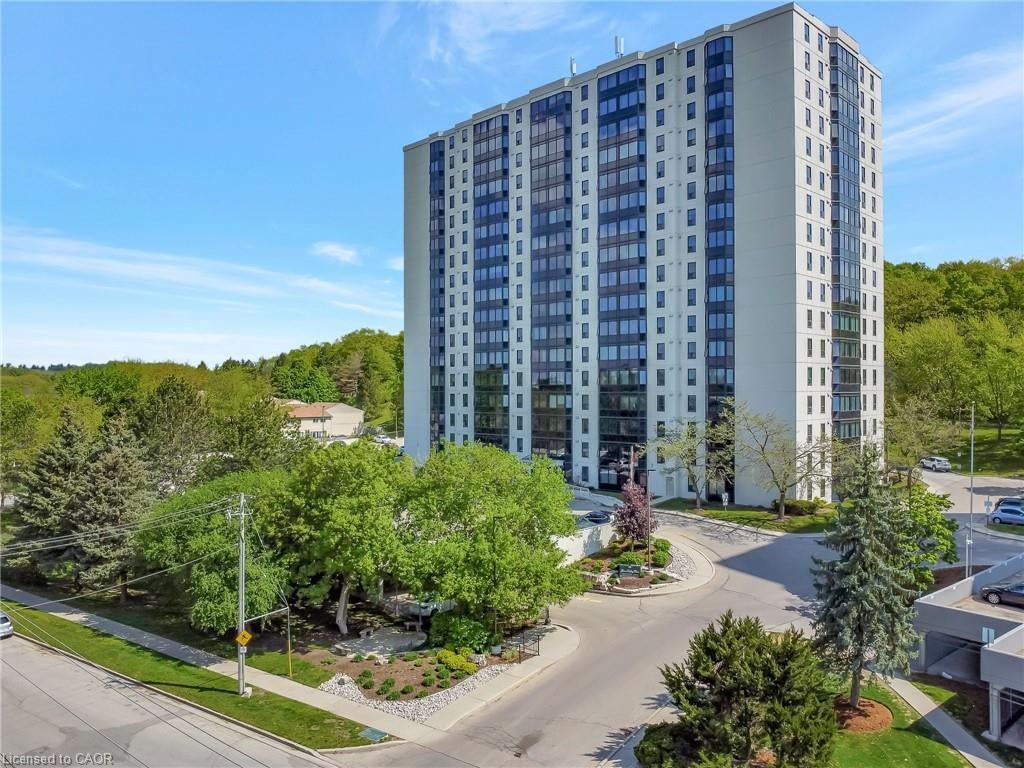 Welcome to the highly coveted Green Valley Place—where comfort meets convenience! This exquisite 1 bedroom + den condo offers an impressive nearly 1000 sq. ft. of space, making it the largest one-bedroom layout in the building. The expansive living room is flooded with natural light, thanks to its stunning bay window that frames breathtaking views of the serene conservation parks and trails. The chef-inspired eat-in kitchen boasts generous counter and cupboard space, a sleek backsplash, and chic ceramic floors, making meal prep a true pleasure. Plus, enjoy the added bonus of in-unit laundry and six top-tier appliances. The building itself is nothing short of exceptional, with three elevators, on-site management, and a secure entrance for peace of mind. Pamper yourself with luxurious amenities like a dry sauna, a fully equipped gym, a vibrant party room, and a fun-filled games room. Step outside and immerse yourself in nature, with scenic walking and biking trails along the Grand River right at your doorstep. Just a short stroll away, you'll find the community center, public library, and a recently revamped shopping plaza featuring Zehrs, Shoppers Drug Mart, LCBO, and a variety of top-tier restaurants. With public transit nearby and quick access to the 401, your commute couldn't be easier. This is more than just a home—it's a lifestyle!