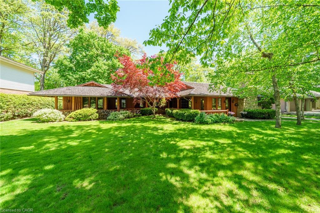 Same family over 50 years, lovingly cared for & maintained. This sprawling bungalow sits on a 100x 237-foot ravine lot. Inside you are invited into a generous living room with wood burning fireplace & ample space for a piano, the formal dining room has a wood burning fireplace & built-in cabinets, worthy of formal dinner parties or extended family gatherings. The eat-in kitchen flows through to the cozy, rustic family room with skylights, French doors & built-in bookshelves. The sun-filled walkway to the bedroom wing boasts several windows overlooking the beautiful rear yard & ravine. Primary bedroom with wood-burning fireplace, built-in wardrobes, 4-piece ensuite & private balcony. Two more bedrooms & 4-piece bathroom with main floor laundry complete this area. Before heading downstairs, there is an additional 4-piece bathroom & breezeway access to the garage. In the lower level of the home, you will find a recroom with yet anther woodburning fireplace, two rooms currently used as guest bedrooms, a 3-piece washroom & storage room. Outside-enjoy the tranquility of the ravine & all the privacy it offers. Enjoy the shade & solitude of the wraparound front porch on one of Aldershot’s most well-known streets. Stroll to the lake at the end of the street, the Burlington Golf & Country Club, LaSalle Park & Marina. This home is truly one of a kind.