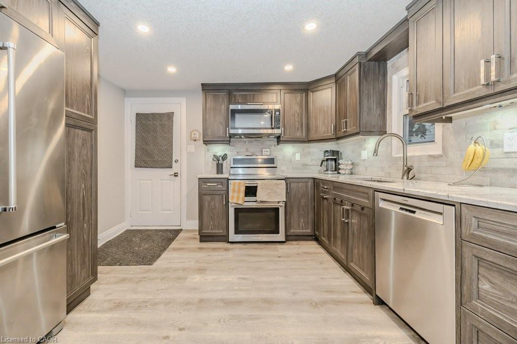 Nestled in the desirable Preston Heights neighbourhood, this beautifully renovated 2-storey family home offers modern elegance with exceptional functionality, all in a location just steps from parks, schools, and scenic trails. Completely updated from top to bottom in 2019, the home boasts a bright and inviting living room that is flooded with natural light from large windows, and an eat-in kitchen showcasing custom cabinetry, quartz countertops, modern appliances, a pantry cupboard, and a charming dinette area with custom, built-in bench seating and hidden storage. Upstairs, four comfortable bedrooms and a tastefully updated 4-piece bathroom offer an ideal retreat for the whole family. The finished basement extends the living space with a spacious recreation room, a 3-piece bathroom, laundry facilities, and ample storage space. Step outside to enjoy a fully fenced yard complete with mature trees, a large workshop, deck, and gazebo area- perfect for outdoor entertaining or hobbies. Parking for three vehicles ensures plenty of room for family and guests. With its prime location and easy access to Hwy 401, this move-in-ready home is an exceptional choice for commuters or those seeking comfort, style, and convenience.