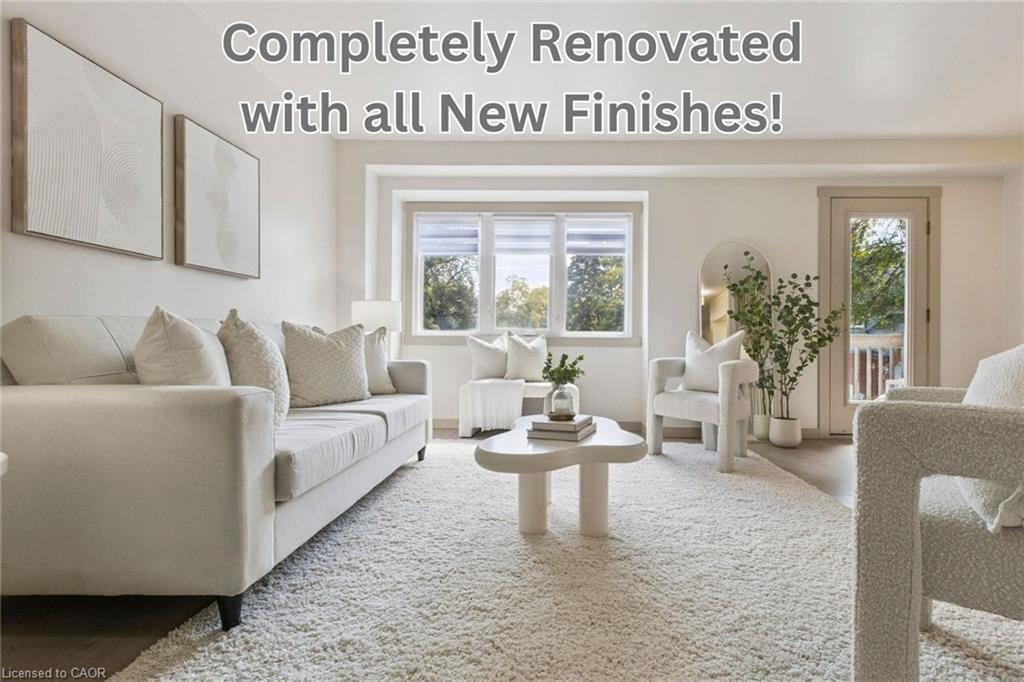 The main level shines with the brand-new luxury vinyl plank flooring, crisp baseboards and trim, and upgraded lighting and window coverings - all of which have been updated throughout the entire home. The kitchen is a showpiece, all brand new cabinets featuring quartz countertops, a stylish backsplash, and a full suite of new appliances, as well as a walk out to a raised deck overlooking greenery. The very large living room can accommodate all your family and friends, and features a walk-out to a cozy balcony. Additionally, you will find a convenient 2 piece bathroom.