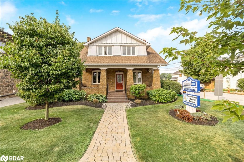 Historic Charm Meets Modern Comfort in the Heart of Milton. Welcome to 142 Martin Street, a beautifully restored century home (circa 1920) located on a generous lot just steps from downtown Milton. Rich in character and timeless appeal, this stately property boasts original interior doors, trim, and a grand staircase that have been lovingly preserved. The refinished original hardwood floors and soaring ceilings create a warm, elegant atmosphere, while the inviting front porch adds a touch of classic charm. Thoughtfully updated for todays lifestyle, the home features modernized essentials including the roof, windows, electrical, and HVAC systems offering peace of mind without compromising its heritage. Currently configured as a professional office space, the layout provides flexibility and can be easily converted back into a stunning family residence. Located in a sought-after neighbourhood surrounded by newly renovated and expanded homes, and just steps to the newly revamped Martin Street Public School, this unique property presents a rare opportunity to own a piece of Milton's history while enjoying all the conveniences of downtown living.