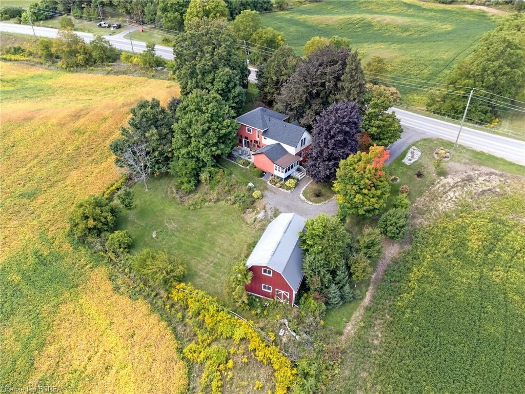 Step into timeless charm with this meticulously maintained century farmhouse, built in 1890 and lovingly owned by the same family for 60 years. Set on a picturesque 0.87 acre lot with mature trees, lush landscaping, and serene hillside views, this 2,274 sqft home offers the perfect blend of historic character and modern comfort combined. Wake up to sunrise views over the countryside and then unwind with sunset skies from the comfort of your front porch. Inside, you'll find a spacious and updated kitchen with granite countertops, double sink, tile floors, pot lights, pantry, and an island perfect for casual gatherings. Stainless steel appliances are included. Patio doors lead to private outdoor space with peaceful rural views. A cozy sunroom addition just off the kitchen adds even more charm and natural light. The main floor also features a formal dining room, a large living room (both with hardwood floors), a handy 2-pc bath with pedestal sink, as well as main floor laundry room aka "the laundry lounge". Upstairs are four generously sized bedrooms and a full 4-pc bath. Two staircases add character and potential, including the opportunity to create a separate in-law suite! Updates include: electrical on breakers, spray foam insulation, windows replaced, a water softener, and a reverse osmosis drinking water system. The high-and-dry basement offers lots of storage space. An INCREDABLE bonus is the 1332 sqft garage/workshop built in 2002, complete with a loft that could be finished into a spectacular space for quests, hobbies, or a studio. This move-in-ready farmhouse exudes charm, comfort, and endless potential. A rare gem that MUST be seen to be fully appreciated. So, call today to book your viewing before it's too late!!!