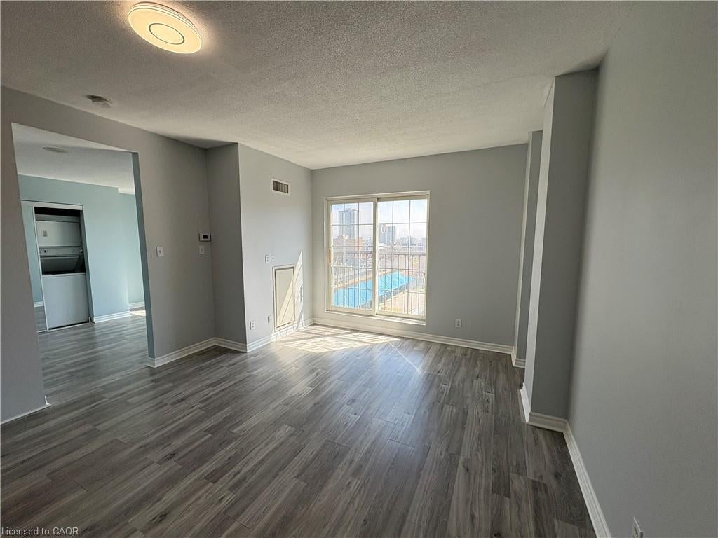 This 8th-floor unit features an open-concept layout with large windows that bathe the space in natural light while offering stunning views of the city. The bedroom comfortably fits a queen-sized bed, and the unit includes a 4-piece bathroom with plenty of counter space and cabinets underneath and convenient in-suite laundry.