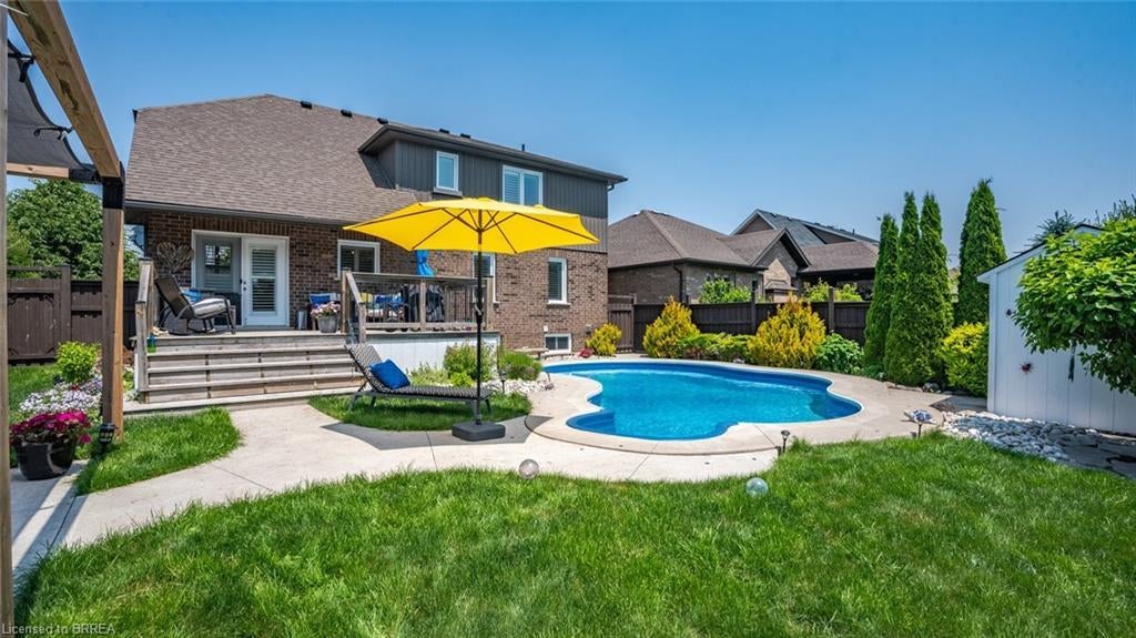 Beautifully Renovated Bungaloft with Backyard Oasis in Sought-After Port Dover! This 3-bedroom, 3-bath bungaloft offers the backyard oasis you’ve been waiting for! Enjoy a private, fully fenced yard featuring a heated 16' x 32' INGROUND SALT WATER POOL with a partially covered upper deck, gas BBQ hookup, shade pergola, concrete patios, low-maintenance gardens updated in 2023. This home has been beautifully upgraded with over $100,000 in renovations, thoughtful touches throughout, newly professionally painted top to bottom and impeccably cared for. Inside, the open-concept main floor boasts a dramatic 17' vaulted ceiling, floor-to-ceiling, a modern gas fireplace, oversized windows, California shutters(2023) and new vinyl flooring(2023) . The renovated kitchen includes a spacious island, quartz countertops, glass backsplash, under-cabinet lighting, and new stainless steel appliances. The main floor primary bedroom features his and hers closets and an ensuite with granite countertop. You'll also find a newly renovated powder room and mudroom for added convenience. The loft level overlooks the Great Room and includes two additional bedrooms, with new carpet, both with walk-in closets and a 4-piece bathroom with quartz counter (updated 2023) Downstairs, the finished lower level offers a cozy family room with gas fireplace, a workshop, and a storage room. Additional features include: Updated bathrooms with stylish vanities and fixtures 2022-2023• California shutters throughout 2023• Double concrete driveway Double garage with insulated door automatic lights• Furnace (2023) • Professionally painted interior exterior 2023 •Professional landscaping. This is a turn-key home in a prime location, close to the lake, schools, trails, beaches, golf, wineries and everything Port Dover has to offer