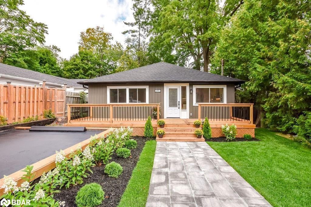 Welcome to this charming bungalow, perfectly located just a short walk from Lake Simcoe, Innisfil Beach Park, and the Innisfil Boat Launch. Set on a large, private lot in the desirable community of Alcona, this home offers both the serenity of lakeside living and easy access to Hwy 11 & 400 for a quick commute. Inside, the bright and spacious open-concept main living area is highlighted by a cozy gas fireplace and flows seamlessly into a beautifully renovated kitchen. Designed with both style and function in mind, the kitchen features solid wood cabinetry, a large island with waterfall quartz counters, under-cabinet lighting, pot lights, and stainless steel appliances. The primary bedroom includes a walkout to the new deck, while the updated bathroom and additional bedroom provide comfort and convenience. Extensive updates throughout the home include new shingles, plumbing, electrical, heat pump, bathroom, kitchen, deck, and fresh landscaping. The expansive yard offers endless opportunities to relax, entertain, or enjoy family time outdoors. Whether you’re looking for a year-round residence or a weekend retreat, this property combines modern updates with the best of lakeside living. This home is truly a must see! Some photos have been virtually staged to to show potential