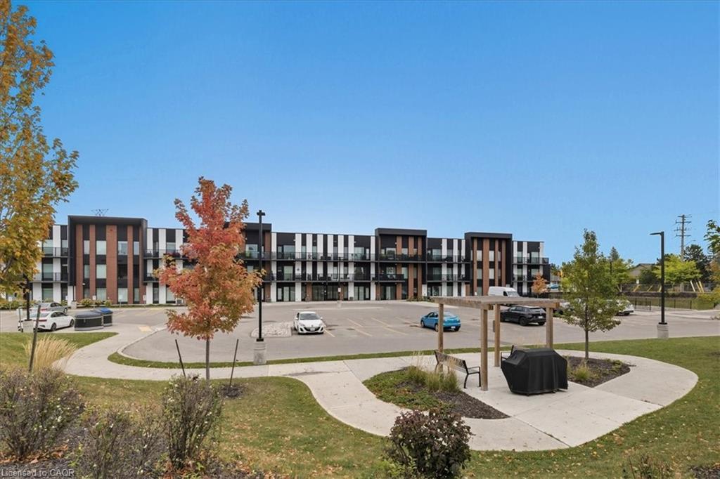 Modern Comfort Meets Urban Convenience at 5 Wake Robin Drive, Kitchener! Welcome to over 1,200 sq ft of sleek, contemporary living in this 2-bedroom, 2-bath condo ideally located just steps from Sunrise Plaza and minutes to Hwy 7/8. Designed with both style and function in mind, this home boasts soaring 9+ foot ceilings, wide-plank hardwood flooring, designer light fixtures, bold modern accent walls, and oversized windows that flood the space with natural light. The chef-inspired kitchen features granite countertops, a massive island with bar seating, ample cabinetry, and stainless steel appliances — perfect for entertaining or everyday living. The spacious primary bedroom includes a full ensuite bath, while a second full bathroom ensures comfort for guests or roommates. You’ll love the bonus in-suite laundry room with extra storage, plus the added value of 2 parking spots and a locker. Step outside to your ultra-modern oversized balcony, ideal for morning coffee or evening wine. Perfect for young professionals or empty nesters seeking low-maintenance living in a walkable, well-connected urban hub. Experience luxury Kitchener real estate at its finest — this is the one you’ve been waiting for!