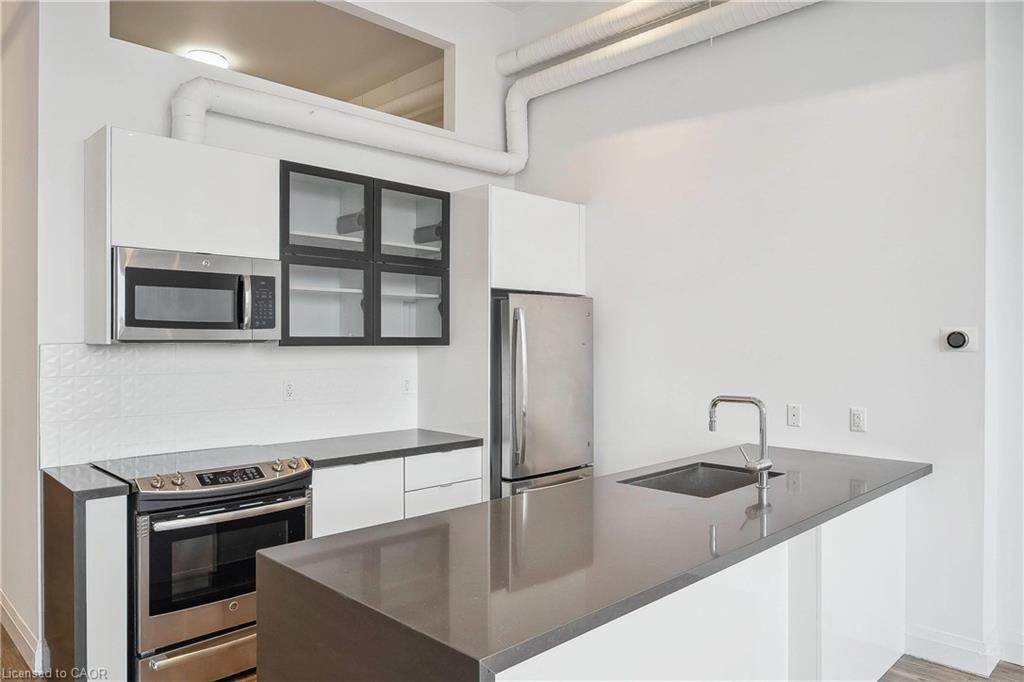 Experience modern luxury in this stunning 1-bedroom, 1-bathroom loft-style condo located in the sought-after Dundurn Lofts, nestled in Hamilton’s upscale Kirkendall neighbourhood. Soaring 14-foot ceilings and expansive windows flood the space with natural light, creating an open and airy ambiance that’s both stylish and functional. This beautifully designed unit features premium finishes throughout, including sleek flooring, high-end fixtures, and a contemporary kitchen perfect for entertaining. Enjoy the comfort of individual climate control and the convenience of in-suite laundry. Situated just minutes from the GO Station and with easy access to the highway, commuting is effortless—yet the building is surrounded by mature trees and tranquil green space, offering the best of both worlds. Step outside and explore all that Locke Street has to offer—trendy cafes, boutiques, and restaurants are just a short walk away. You're also moments from major shopping amenities like Fortinos, and close to McMaster University, McMaster Hospital, and Hamilton General Hospital. Perfect for professionals, investors, or anyone seeking urban convenience with a touch of nature. Don’t miss your chance to own a piece of one of Hamilton’s most desirable communities.
